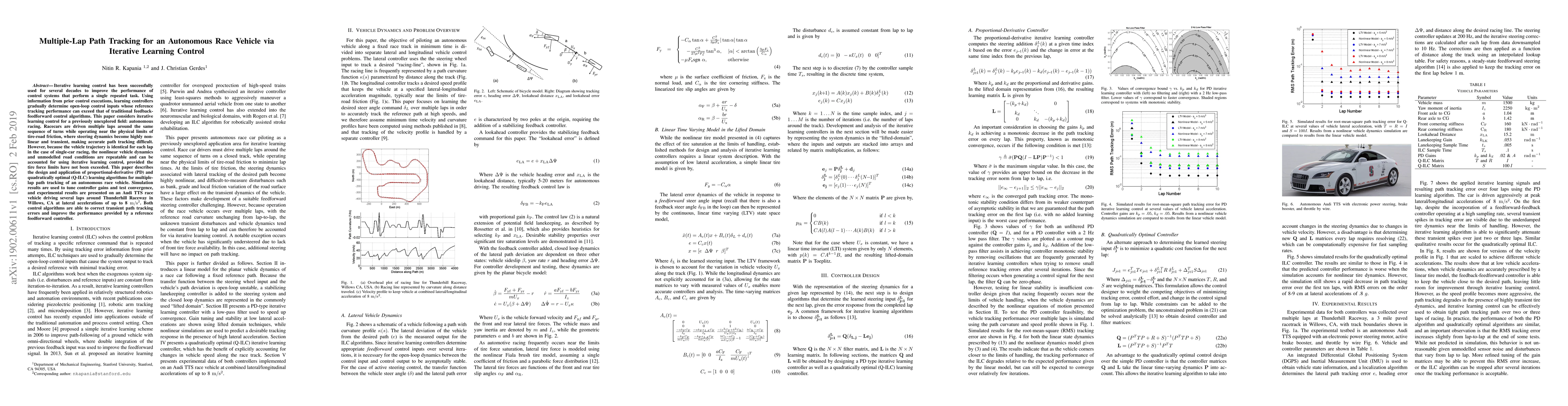 This paper explores iterative learning control for improving path tracking in highly dynamic autonomous racing scenarios. It applies PD and Q-ILC algorithms to correct transient errors and enhance performance, demonstrating successful results through simulations and real-world testing on an Audi TTS race vehicle.
