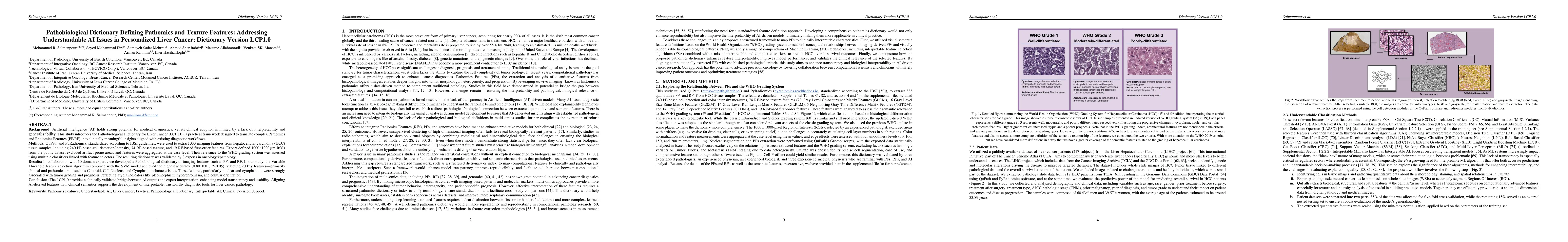 The introduction of the Pathobiological Dictionary for Liver Cancer (LCP1.0), which translates complex Pathomics and Radiomics features into clinically meaningful insights.