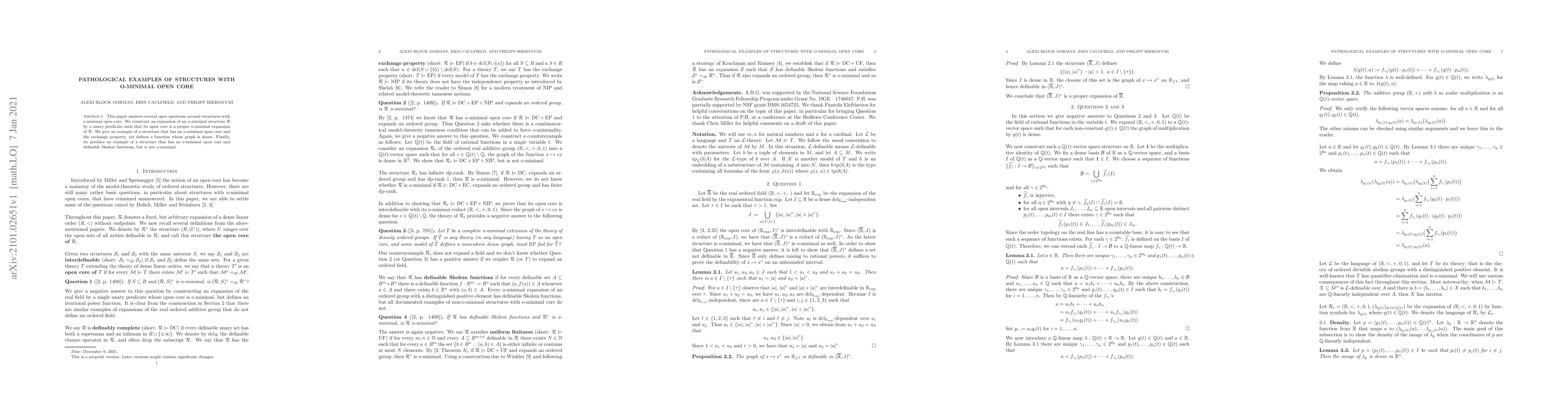 Researchers developed examples of structures with o-minimal open core that expand beyond traditional definitions, revealing new properties such as dense graphs and definable Skolem functions.