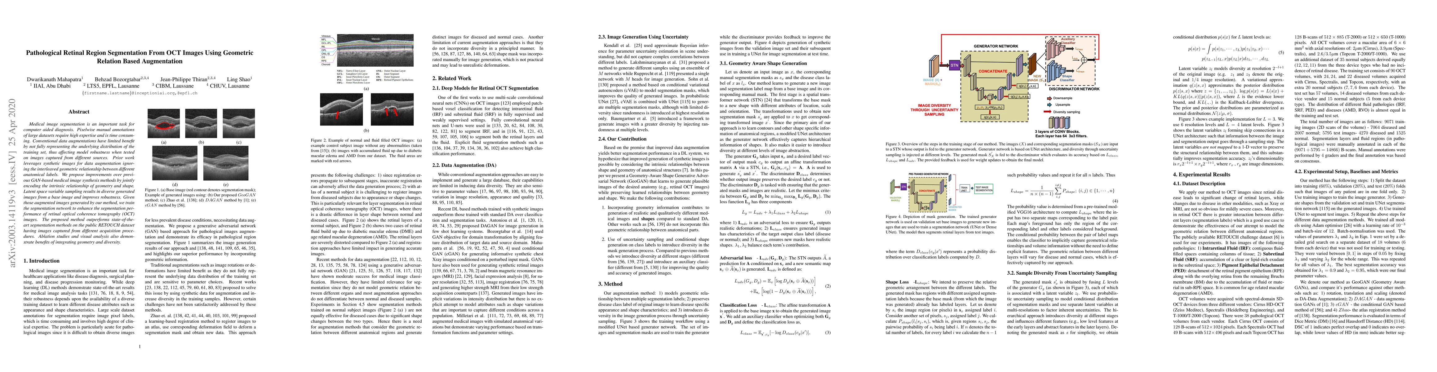 This paper proposes a novel data augmentation method for retinal region segmentation using OCT images, which leverages geometric relationships to generate diverse synthetic images. The method outperforms existing techniques by enhancing model robustness and segmentation performance, as demonstrated on the RETOUCH dataset.