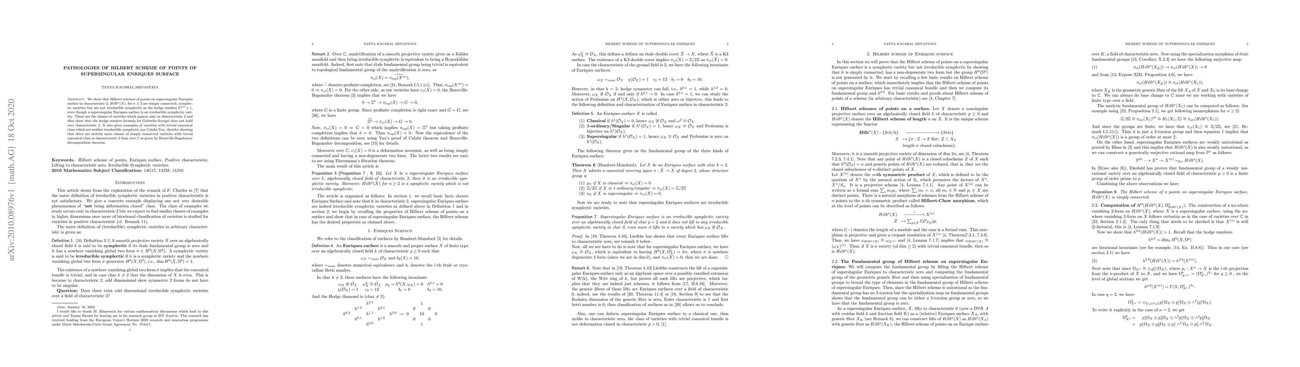 The paper demonstrates that Hilbert schemes of points on supersingular Enriques surfaces in characteristic 2 are simply connected and symplectic but not irreducible symplectic, revealing a failure of the Hodge number formula over characteristic 2 and showing additional classes of simply connected varieties with trivial canonical class.