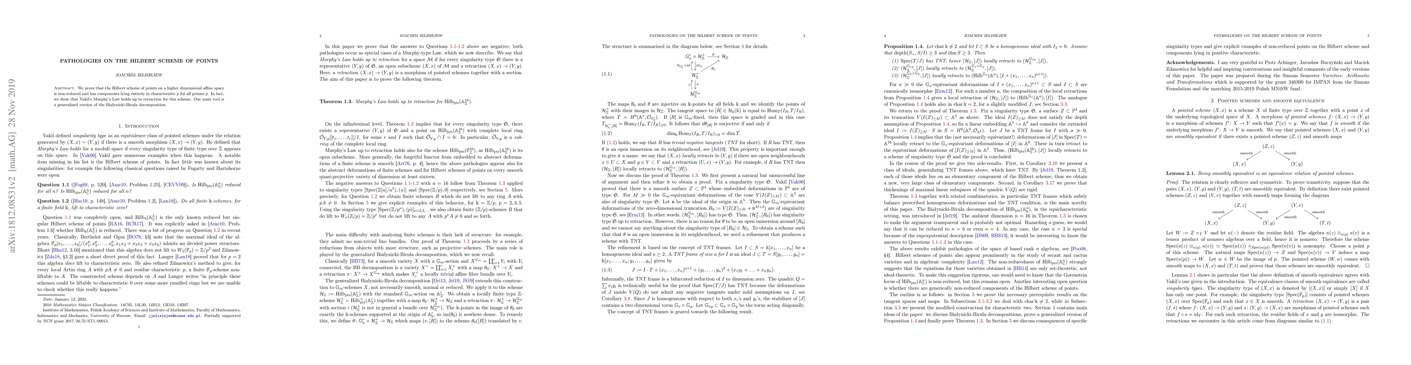 This paper demonstrates that the Hilbert scheme of points on higher dimensional affine space is non-reduced and contains components in every positive characteristic. The authors utilize a generalized Bialynicki-Birula decomposition to prove Vakil's Murphy's Law holds up to retraction for this scheme.