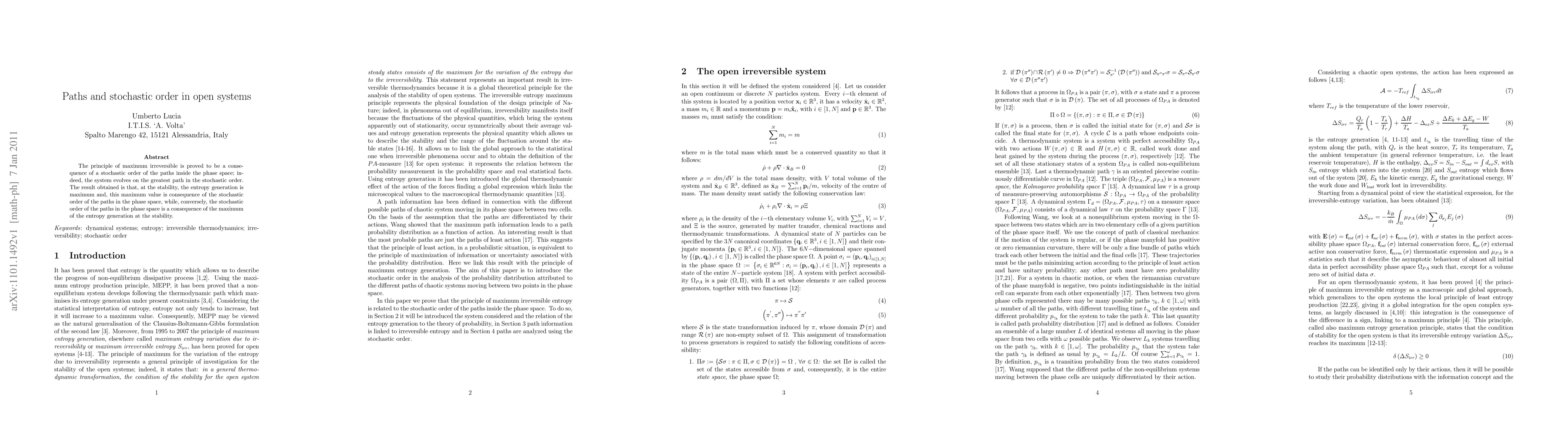 This research paper proves that a system evolves along the greatest path in its phase space, which leads to maximum entropy generation at stability. This relationship between entropy generation and stochastic order of paths is a fundamental principle in open systems.