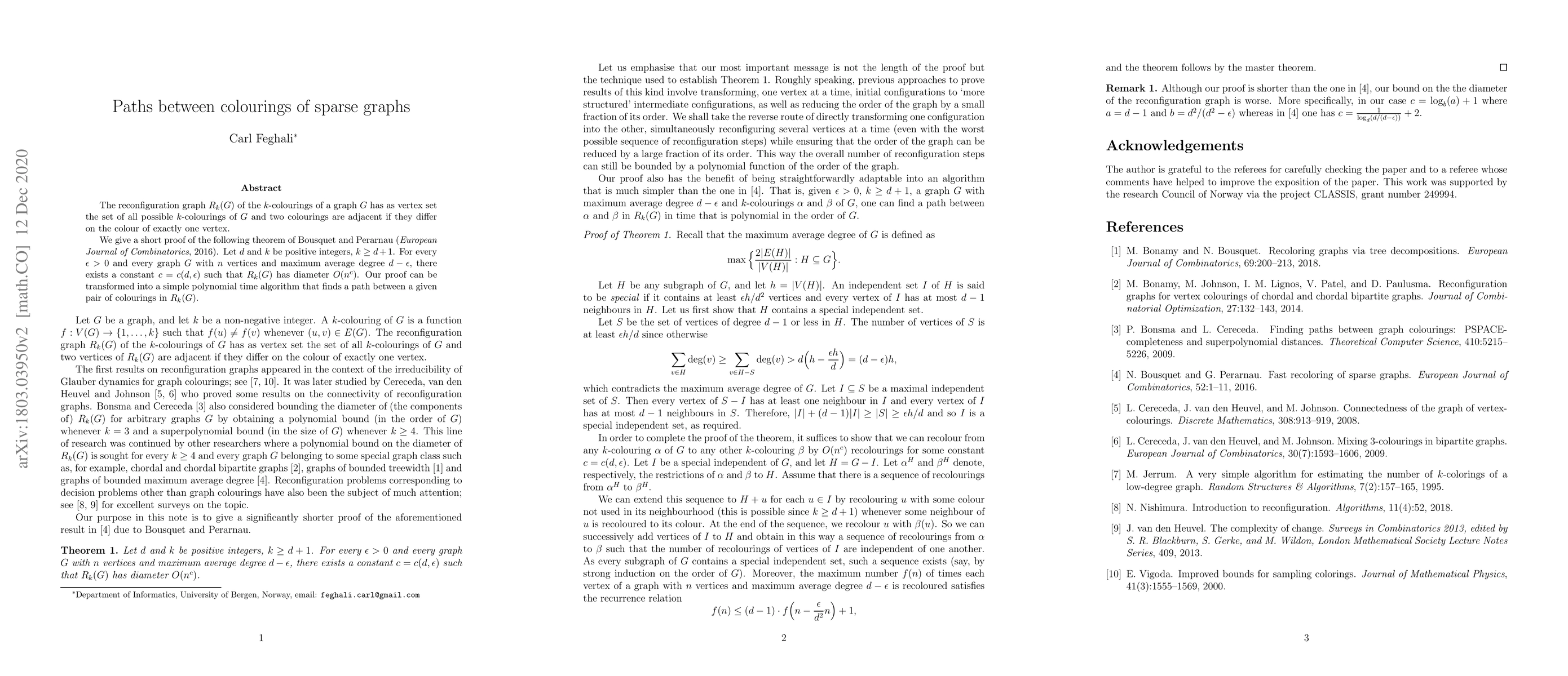 Researchers prove that for sparse graphs with a certain maximum average degree, there exists a constant c such that the diameter of their reconfiguration graph is bounded by O(n^c). They also demonstrate how to transform this proof into a simple polynomial time algorithm.