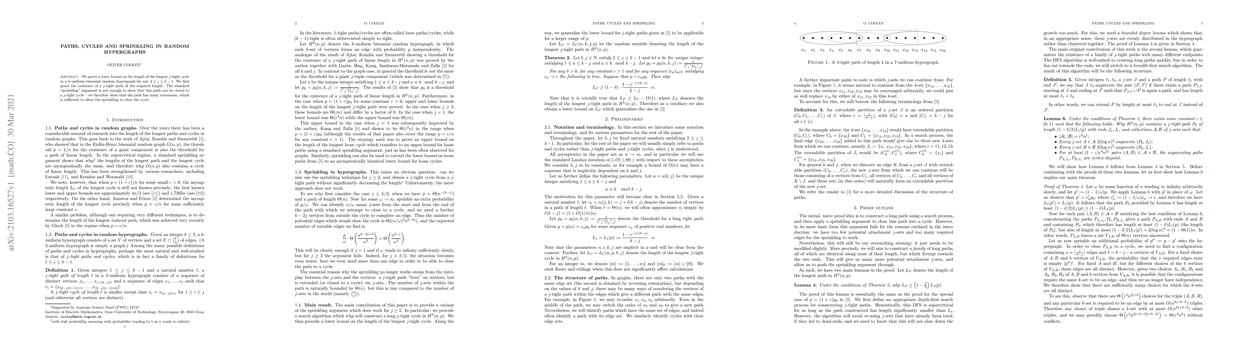 We prove a lower bound on the length of the longest $j$-tight cycle in a $k$-uniform binomial random hypergraph for any $2 \le j \le k-1$. We first prove the existence of a $j$-tight path of the required length. The standard "sprinkling" argument is not enough to show that this path can be closed to a $j$-tight cycle -- we therefore show that the path has many extensions, which is sufficient to allow the sprinkling to close the cycle.
