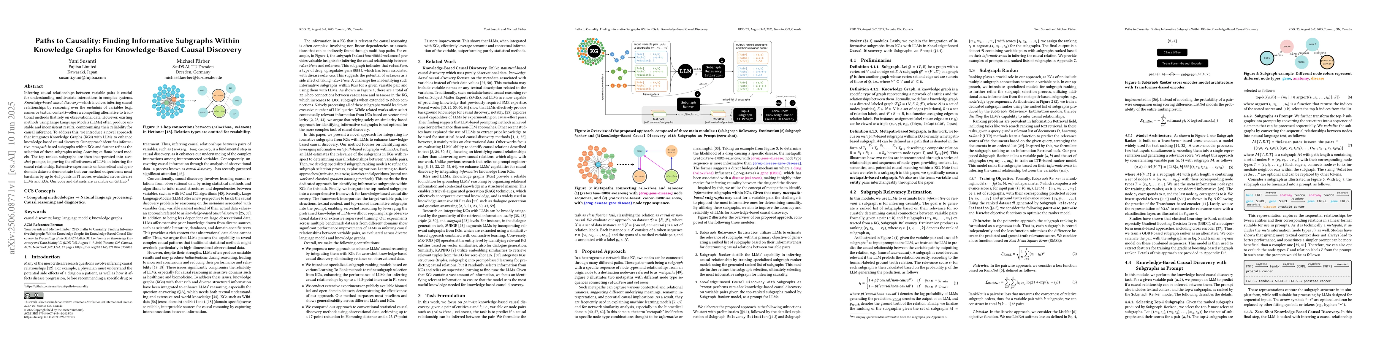 Inferring causal relationships between variable pairs is crucial for understanding multivariate interactions in complex systems. Knowledge-based causal discovery -- which involves inferring causal relationships by reasoning over the metadata of variables (e.g., names or textual context) -- offers a compelling alternative to traditional methods that rely on observational data. However, existing methods using Large Language Models (LLMs) often produce unstable and inconsistent results, compromising their reliability for causal inference. To address this, we introduce a novel approach that integrates Knowledge Graphs (KGs) with LLMs to enhance knowledge-based causal discovery. Our approach identifies informative metapath-based subgraphs within KGs and further refines the selection of these subgraphs using Learning-to-Rank-based models. The top-ranked subgraphs are then incorporated into zero-shot prompts, improving the effectiveness of LLMs in inferring the causal relationship. Extensive experiments on biomedical and open-domain datasets demonstrate that our method outperforms most baselines by up to 44.4 points in F1 scores, evaluated across diverse LLMs and KGs. Our code and datasets are available on GitHub: https://github.com/susantiyuni/path-to-causality