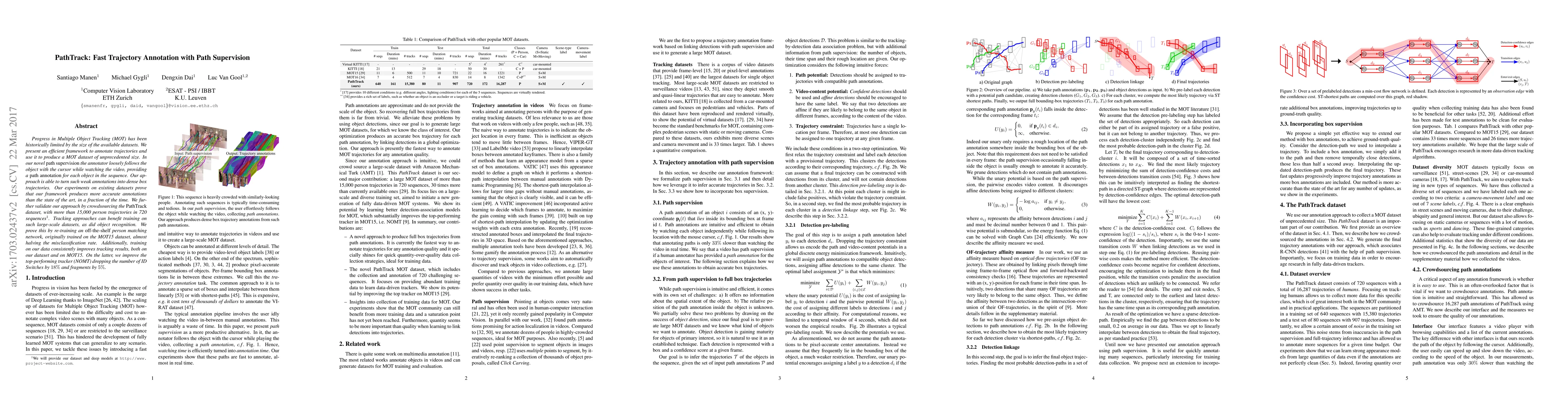 Progress in Multiple Object Tracking (MOT) has been historically limited by the size of the available datasets. We present an efficient framework to annotate trajectories and use it to produce a MOT dataset of unprecedented size. In our novel path supervision the annotator loosely follows the object with the cursor while watching the video, providing a path annotation for each object in the sequence. Our approach is able to turn such weak annotations into dense box trajectories. Our experiments on existing datasets prove that our framework produces more accurate annotations than the state of the art, in a fraction of the time. We further validate our approach by crowdsourcing the PathTrack dataset, with more than 15,000 person trajectories in 720 sequences. Tracking approaches can benefit training on such large-scale datasets, as did object recognition. We prove this by re-training an off-the-shelf person matching network, originally trained on the MOT15 dataset, almost halving the misclassification rate. Additionally, training on our data consistently improves tracking results, both on our dataset and on MOT15. On the latter, we improve the top-performing tracker (NOMT) dropping the number of IDSwitches by 18% and fragments by 5%.