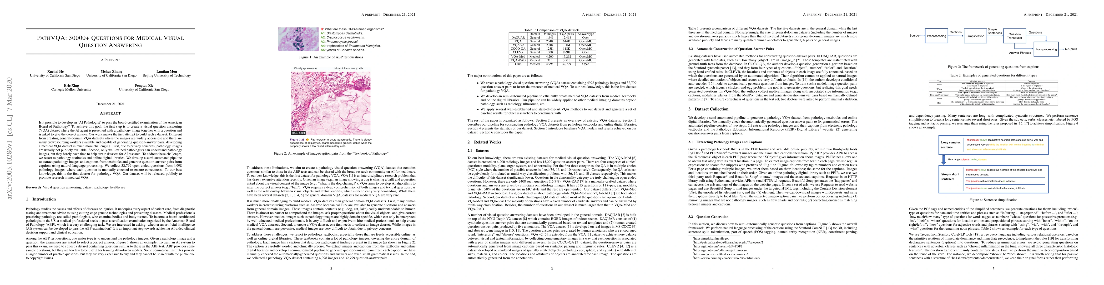 The paper introduces PathVQA, a novel visual question answering dataset for pathology images, aiming to facilitate the development of AI pathologists. The authors address the unique challenges of creating a medical VQA dataset by using a semi-automated pipeline to extract and generate questions from pathology textbooks, resulting in 32,799 questions from 4,998 images, which will be publicly released to advance medical VQA research.