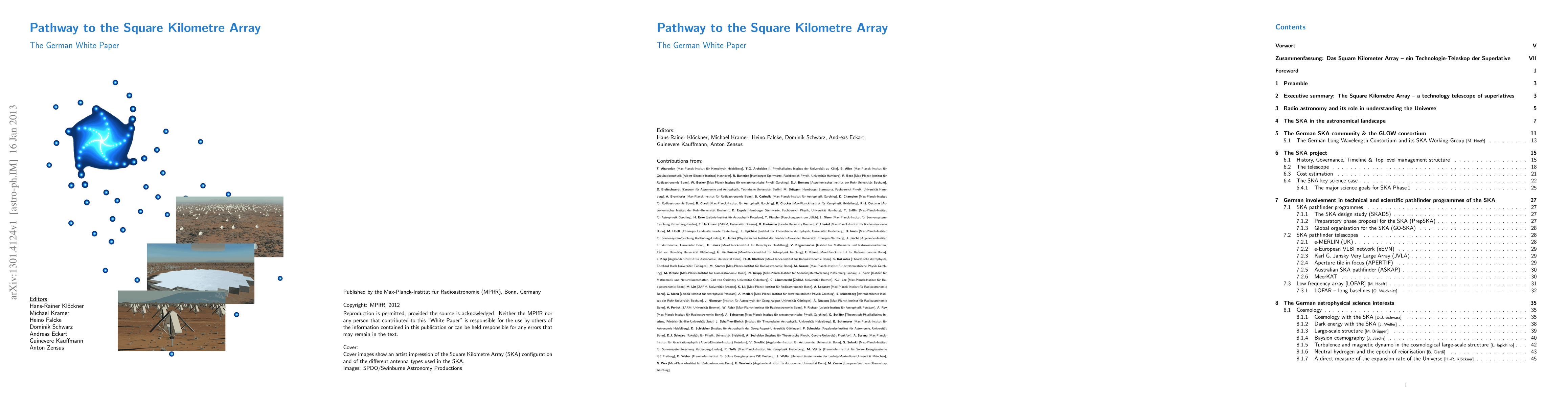 This "White Paper" outlines Germany's scientific and research interests in the Square Kilometre Array (SKA) project, emphasizing its superior sensitivity and technological challenges, and serves as a foundation for future funding applications to secure German involvement.