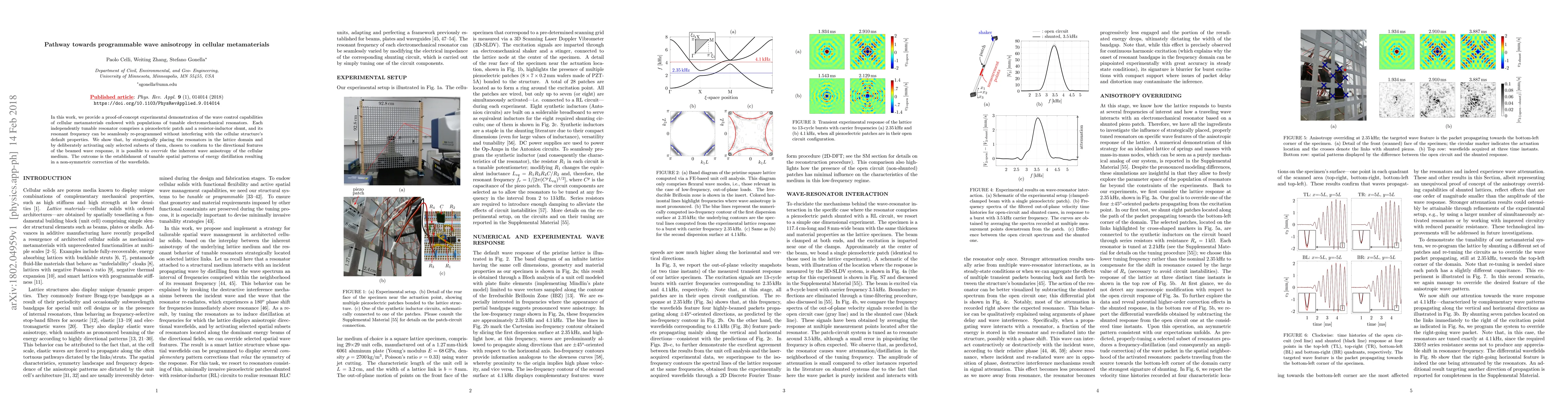 In this work, we provide a proof-of-concept experimental demonstration of the wave control capabilities of cellular metamaterials endowed with populations of tunable electromechanical resonators. Each independently tunable resonator comprises a piezoelectric patch and a resistor-inductor shunt, and its resonant frequency can be seamlessly re-programmed without interfering with the cellular structure's default properties. We show that, by strategically placing the resonators in the lattice domain and by deliberately activating only selected subsets of them, chosen to conform to the directional features of the beamed wave response, it is possible to override the inherent wave anisotropy of the cellular medium. The outcome is the establishment of tunable spatial patterns of energy distillation resulting in a non-symmetric correction of the wavefields.