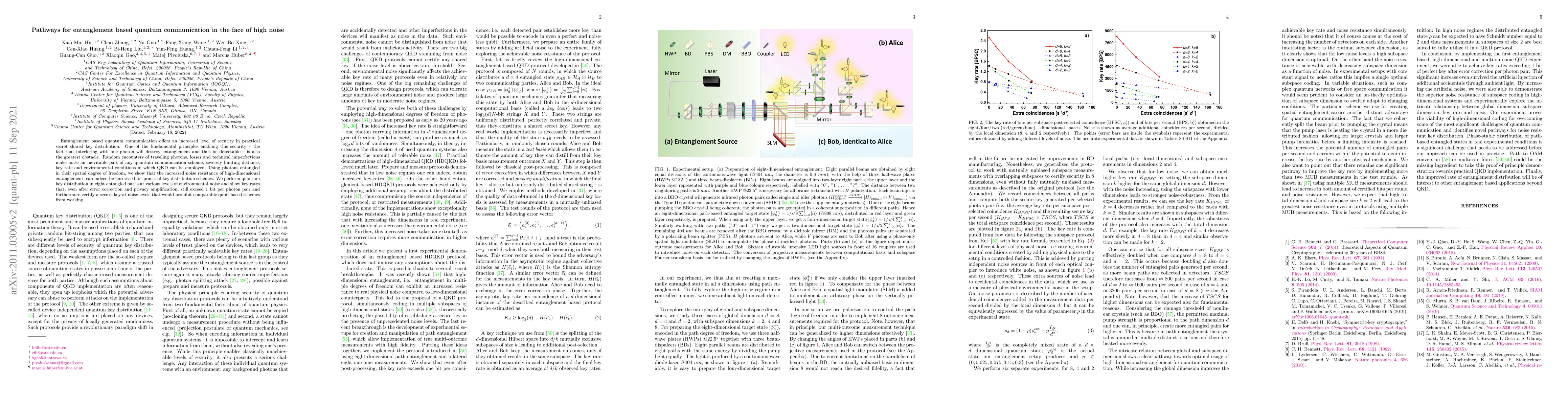 Entanglement based quantum communication offers an increased level of security in practical secret shared key distribution. One of the fundamental principles enabling this security -- the fact that interfering with one photon will destroy entanglement and thus be detectable -- is also the greatest obstacle. Random encounters of traveling photons, losses and technical imperfections make noise an inevitable part of any quantum communication scheme, severely limiting distance, key rate and environmental conditions in which QKD can be employed. Using photons entangled in their spatial degree of freedom, we show that the increased noise resistance of high-dimensional entanglement, can indeed be harnessed for practical key distribution schemes. We perform quantum key distribution in eight entangled paths at various levels of environmental noise and show key rates that, even after error correction and privacy amplification, still exceed $1$ bit per photon pair and furthermore certify a secure key at noise levels that would prohibit comparable qubit based schemes from working.
