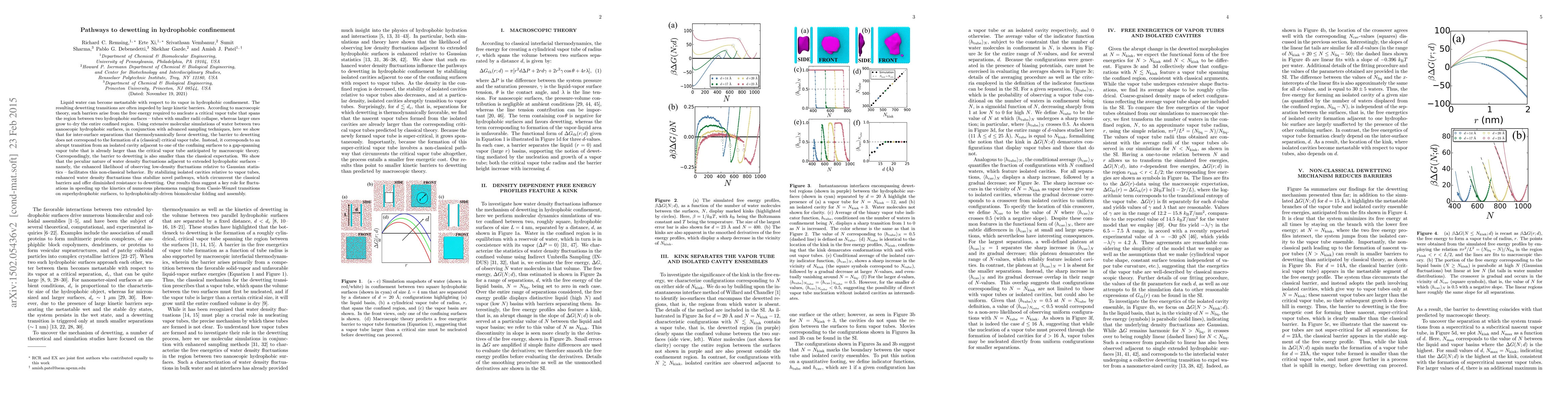 This paper demonstrates that in hydrophobic confinement, dewetting occurs through a non-classical pathway, where the barrier arises from the transition from an isolated cavity to a larger spanning vapor tube, rather than the formation of a critical vapor tube as predicted by macroscopic theory. Enhanced water density fluctuations near hydrophobic surfaces facilitate this process, offering reduced resistance to dewetting and suggesting fluctuations play a crucial role in speeding up related phenomena.