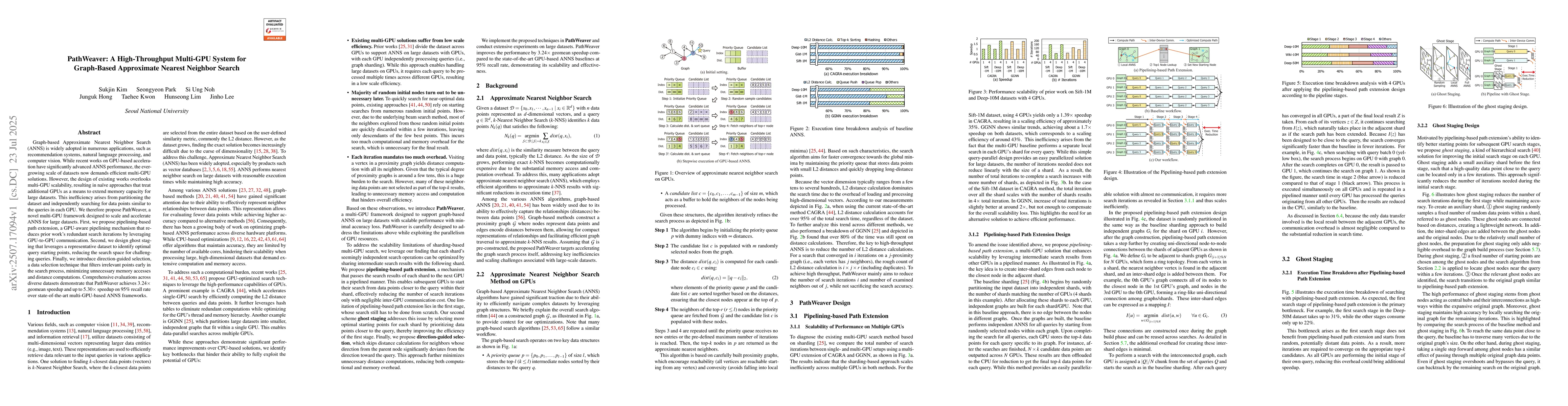 Graph-based Approximate Nearest Neighbor Search (ANNS) is widely adopted in numerous applications, such as recommendation systems, natural language processing, and computer vision. While recent works on GPU-based acceleration have significantly advanced ANNS performance, the ever-growing scale of datasets now demands efficient multi-GPU solutions. However, the design of existing works overlooks multi-GPU scalability, resulting in naive approaches that treat additional GPUs as a means to extend memory capacity for large datasets. This inefficiency arises from partitioning the dataset and independently searching for data points similar to the queries in each GPU. We therefore propose PathWeaver, a novel multi-GPU framework designed to scale and accelerate ANNS for large datasets. First, we propose pipelining-based path extension, a GPU-aware pipelining mechanism that reduces prior work's redundant search iterations by leveraging GPU-to-GPU communication. Second, we design ghost staging that leverages a representative dataset to identify optimal query starting points, reducing the search space for challenging queries. Finally, we introduce direction-guided selection, a data selection technique that filters irrelevant points early in the search process, minimizing unnecessary memory accesses and distance computations. Comprehensive evaluations across diverse datasets demonstrate that PathWeaver achieves 3.24$\times$ geomean speedup and up to 5.30$\times$ speedup on 95% recall rate over state-of-the-art multi-GPU-based ANNS frameworks.