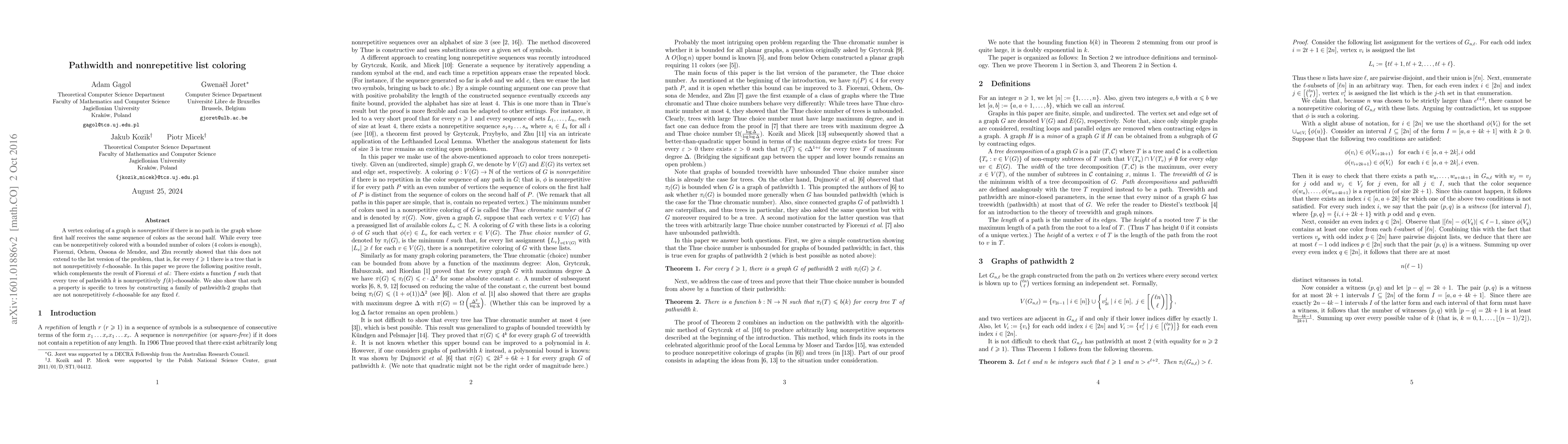 This paper proves that trees of pathwidth $k$ can be nonrepetitively $f(k)$-list colored, contrasting previous findings that trees are not always nonrepetitively $\ell$-choosable. The authors also demonstrate that this property does not extend to pathwidth-2 graphs, which cannot be nonrepetitively $\ell$-list colored for any fixed $\ell$.