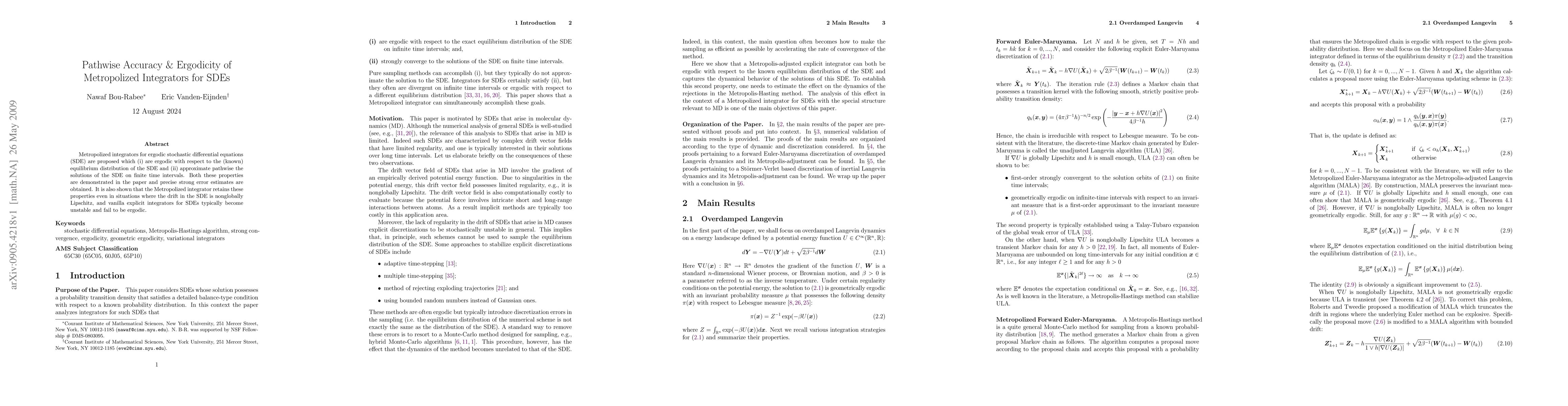 This paper proposes metropolized integrators for ergodic stochastic differential equations (SDE) that are both ergodic with respect to the equilibrium distribution and pathwise accurate on finite intervals, with strong error estimates provided. The method retains these properties even when the SDE drift is nonglobally Lipschitz, unlike traditional explicit integrators.