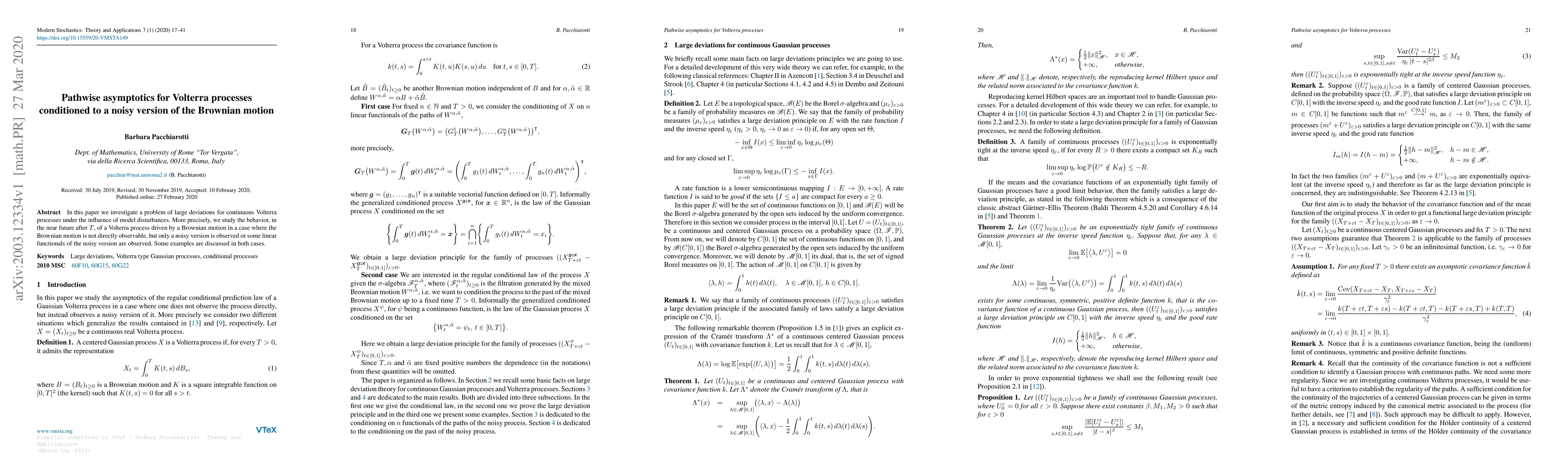This paper investigates the behavior of Volterra processes under model disturbances, focusing on large deviations in their future behavior after a certain time $T$, when observed through noisy versions of Brownian motion or linear functions of these noisies.