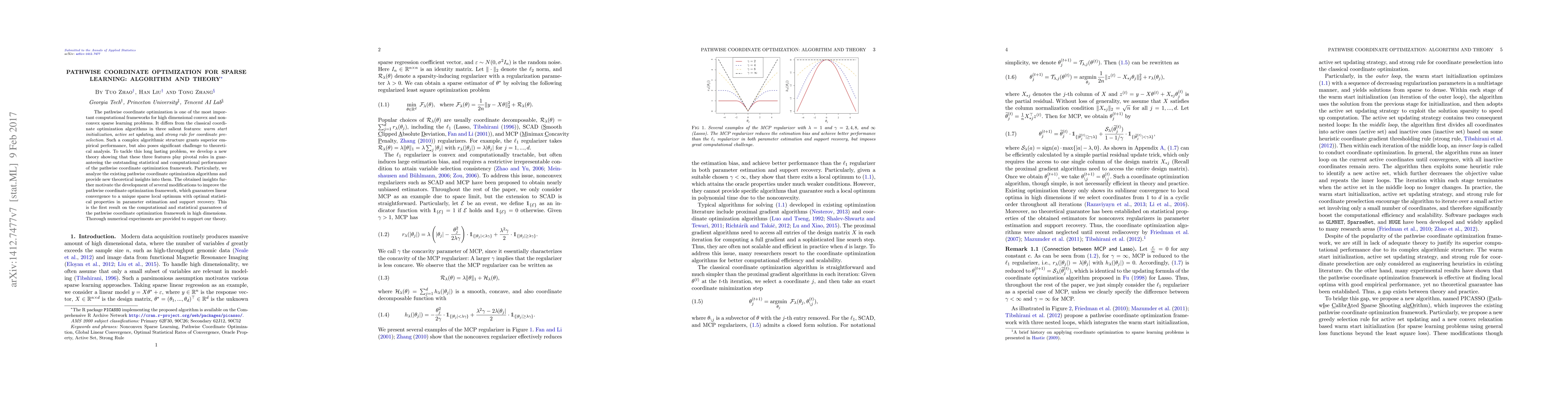 This paper develops a new theoretical framework for pathwise coordinate optimization, highlighting its three key features: warm start initialization, active set updating, and strong rule for coordinate preselection. It provides the first comprehensive analysis of these features' roles in ensuring superior statistical and computational performance, and proposes modifications to achieve linear convergence to a unique sparse local optimum.