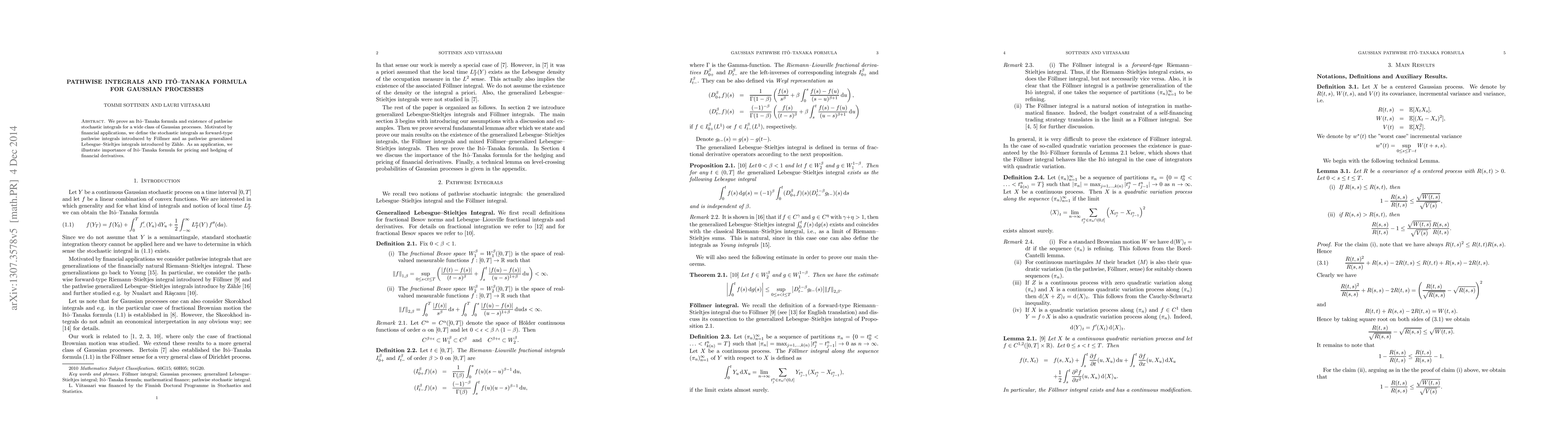 This paper proves the Ito-Tanaka formula and establishes the existence of pathwise stochastic integrals for Gaussian processes, utilizing forward-type pathwise integrals and pathwise generalized Lebesgue-Stieltjes integrals. The work highlights the formula's significance in pricing and hedging financial derivatives.