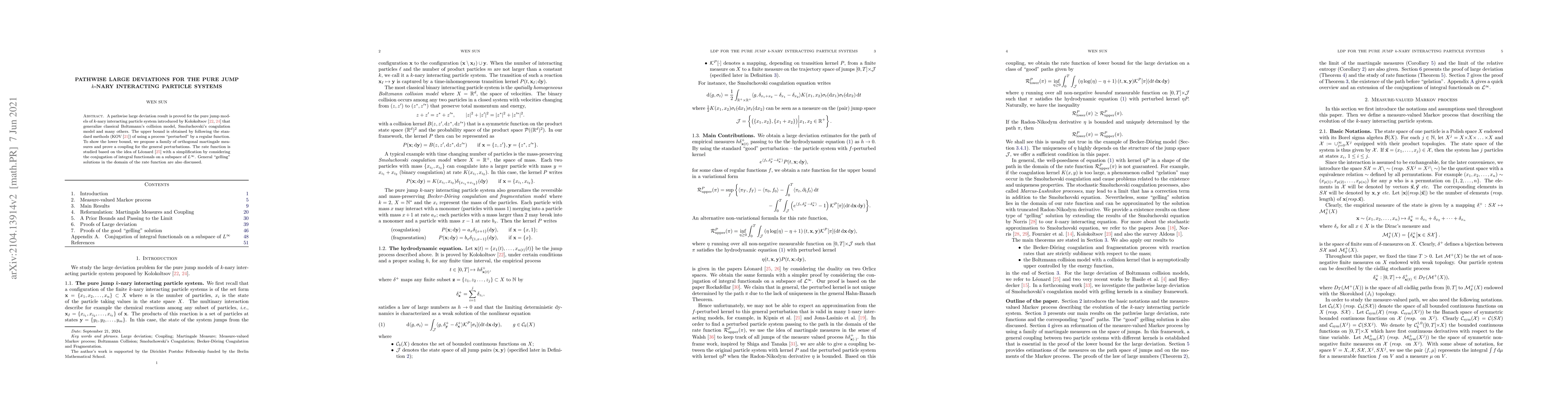 A pathwise large deviation result is proved for the pure jump models of $k$-nary interacting particle system introduced by Kolokoltsov that generalize classical Boltzmann's collision model, Smoluchovski's coagulation model and many others. The upper bound is obtained by following the standard methods of using a process "perturbed" by a regular function. To show the lower bound, we propose a family of orthogonal martingale measures and prove a coupling for the general perturbations. The rate function is studied based on the idea of L\'eonard with a simplification by considering the conjugation of integral functionals on a subspace of $L^{\infty}$. General "gelling" solutions in the domain of the rate function are also discussed.