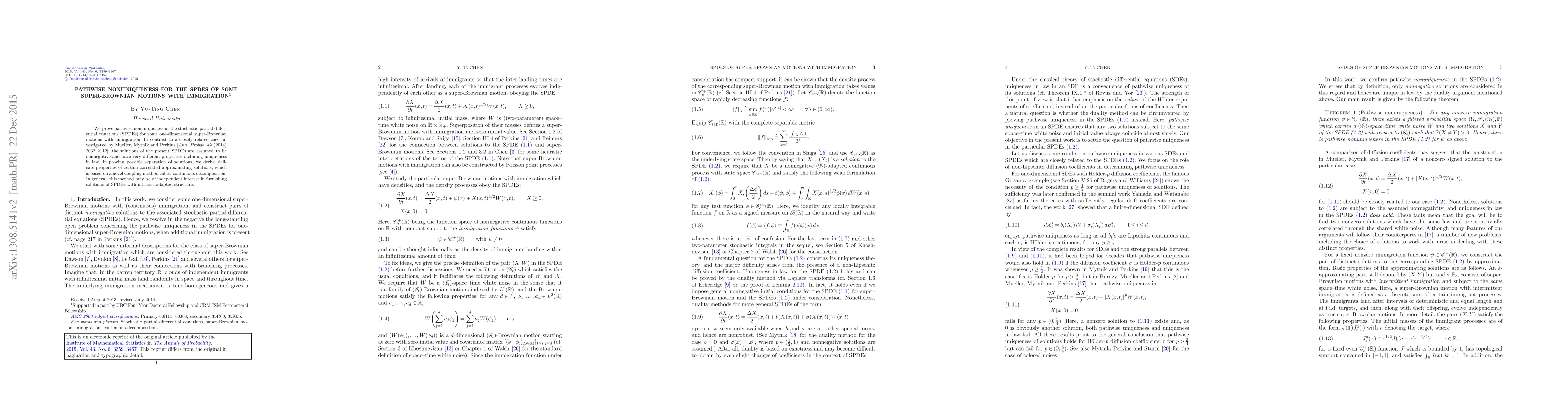 This paper demonstrates pathwise nonuniqueness in stochastic partial differential equations (SPDEs) for one-dimensional super-Brownian motions with immigration, contrasting with previous studies. The authors introduce a novel continuous decomposition coupling method to derive properties of correlated approximating solutions, which may be useful in studying superprocesses with immigration.