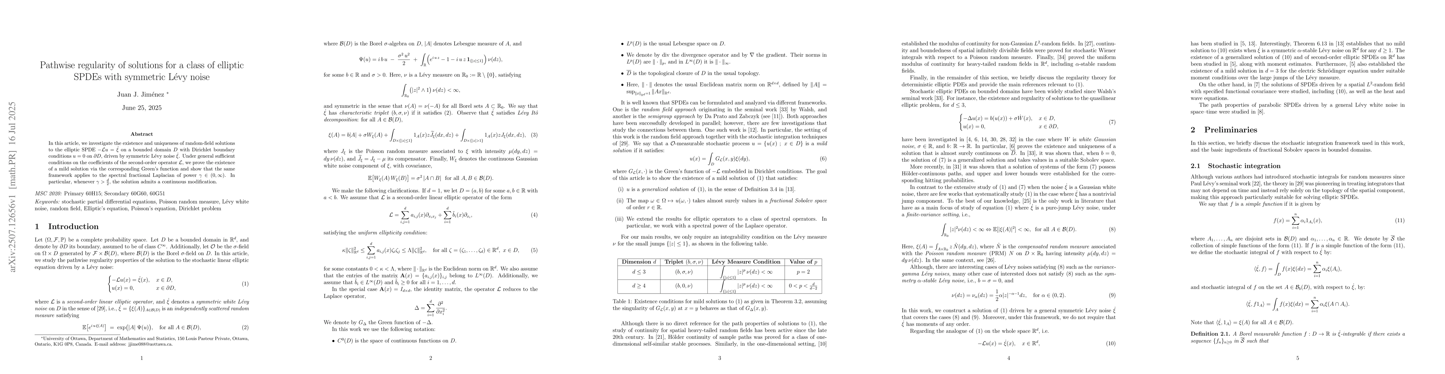 In this article, we investigate the existence and uniqueness of random-field solutions to the elliptic SPDE $-\mathcal{L}u=\dot{\xi}$ on a bounded domain $D$ with Dirichlet boundary conditions $u=0$ on $\partial D$, driven by symmetric L\'evy noise $\dot{\xi}$. Under general sufficient conditions on the coefficients of the second-order operator $\mathcal{L}$, we prove the existence of a mild solution via the corresponding Green's function and show that the same framework applies to the spectral fractional Laplacian of power $\gamma \in (0,\infty)$. In particular, whenever $\gamma>\tfrac{d}{2}$, the solution admits a continuous modification.