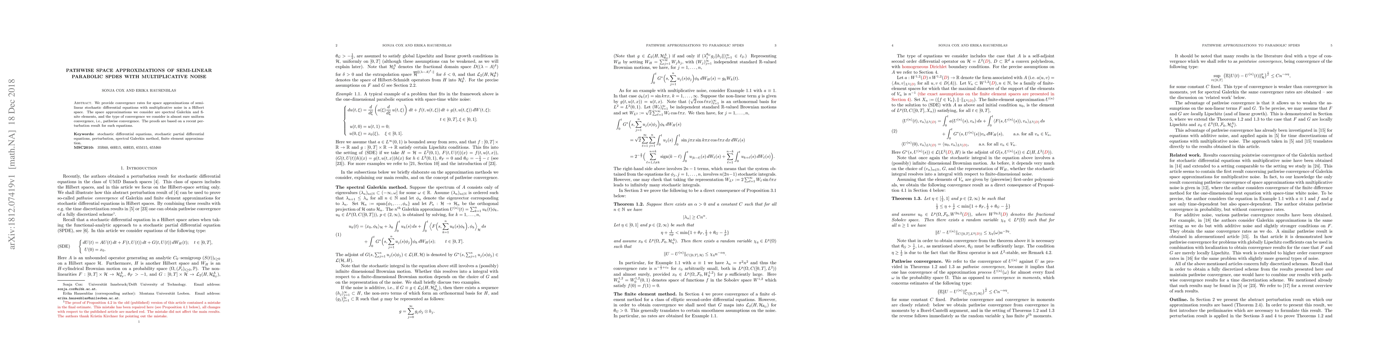 This paper presents convergence rates for spectral Galerkin and finite element approximations of semi-linear parabolic stochastic differential equations with multiplicative noise, focusing on strong and almost sure uniform (pathwise) convergence. The proofs leverage a previously established perturbation result for these types of equations.