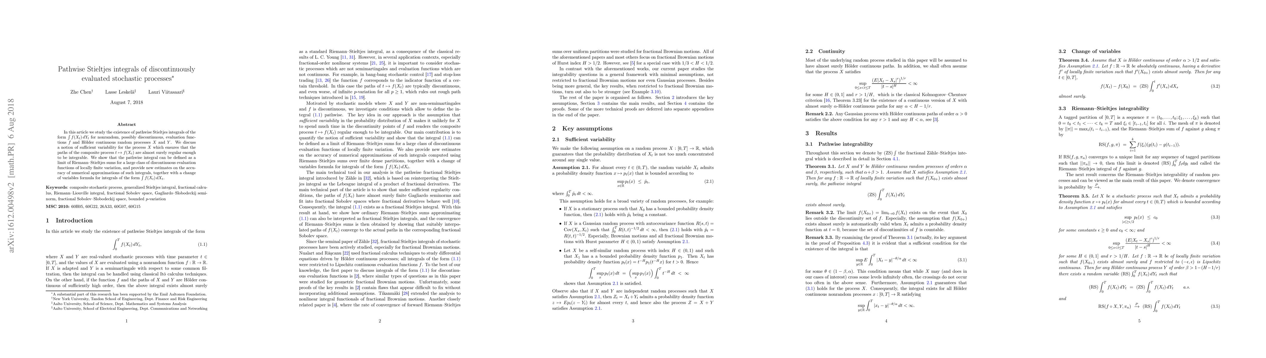 This paper investigates the existence of pathwise Stieltjes integrals for nonrandom, discontinuous functions evaluated on H\"older continuous stochastic processes. It introduces a concept of sufficient variability for the process ensuring integrability and provides new estimates for the accuracy of numerical approximations.