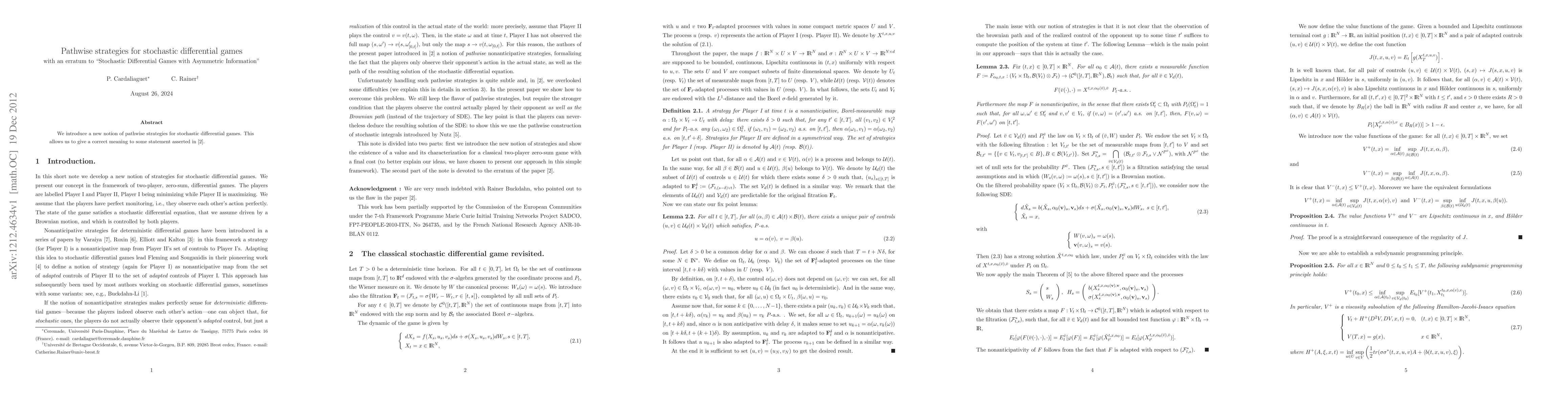 Researchers introduce a new approach to solve stochastic differential games with asymmetric information, providing a correct interpretation of a statement made in 2009. This breakthrough allows for more precise analysis and decision-making in complex game-theoretic scenarios.