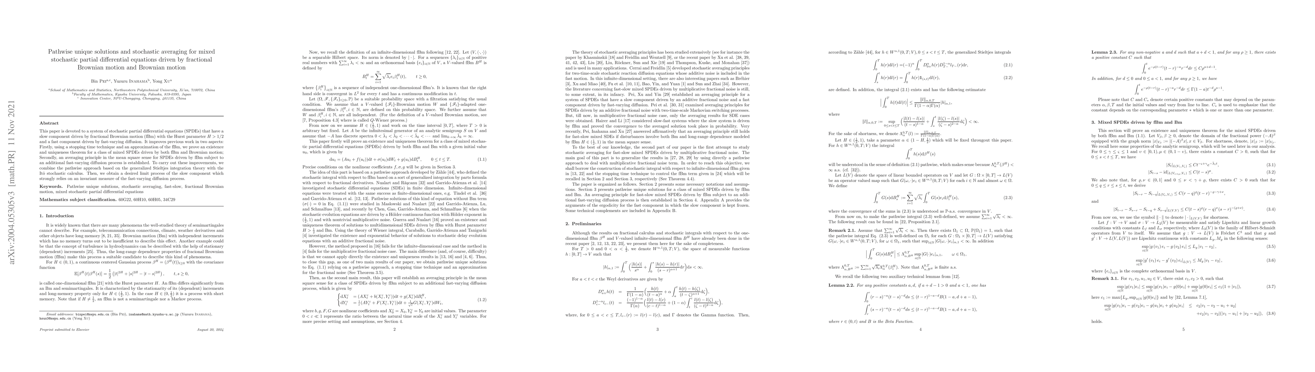 This paper proves pathwise unique solutions for mixed stochastic partial differential equations driven by fractional Brownian motion and Brownian motion, utilizing a stopping time technique and generalized Stieltjes integration. It also establishes an averaging principle for the slow component driven by fractional Brownian motion with an additional fast-varying diffusion process.