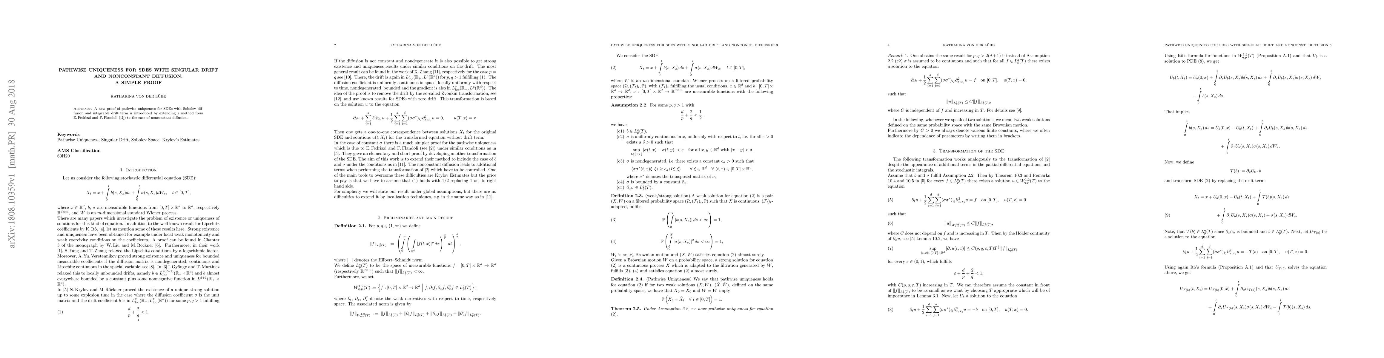 This paper presents a new proof for pathwise uniqueness in stochastic differential equations (SDEs) featuring a singular drift and nonconstant diffusion, extending a method from Fedrizzi and Flandoli to accommodate the nonconstant diffusion scenario.