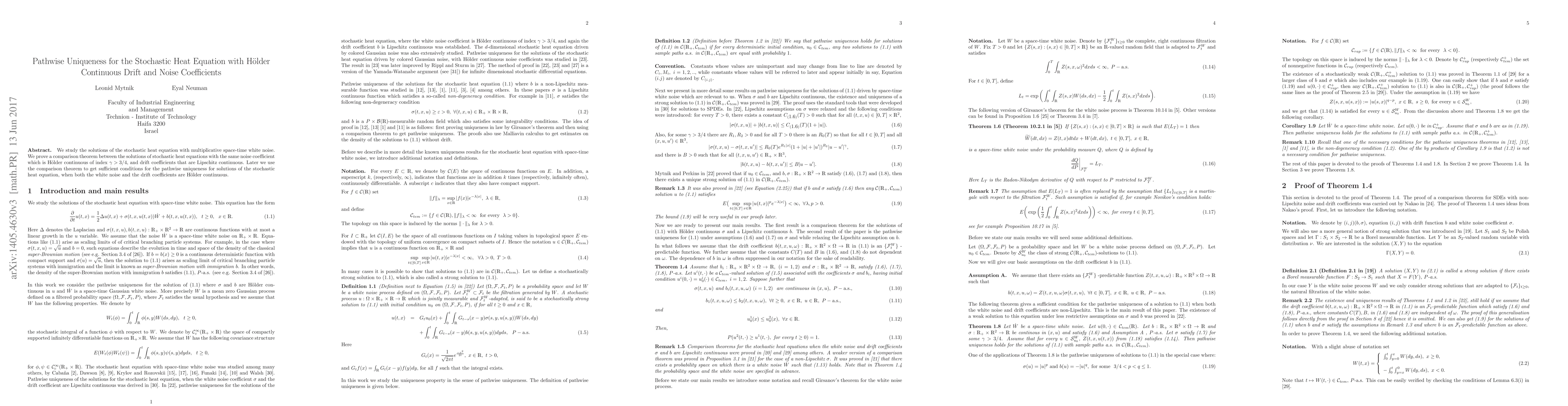 This paper proves a comparison theorem for the stochastic heat equation with H\"older continuous drift and noise coefficients, establishing sufficient conditions for pathwise uniqueness when both are H\"older continuous with $\gamma > 3/4$. The comparison theorem is key to demonstrating the uniqueness of solutions under these conditions.