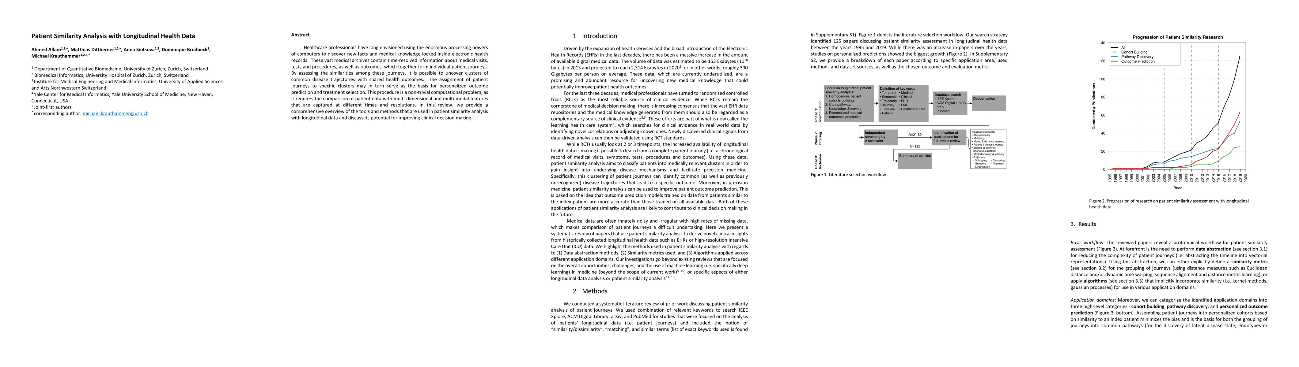 This paper reviews computational tools and methods for analyzing patient similarity based on longitudinal health data, aiming to uncover common disease trajectories and improve personalized treatment and outcome prediction. It emphasizes the complexity of comparing multi-dimensional and multi-modal patient data over time.