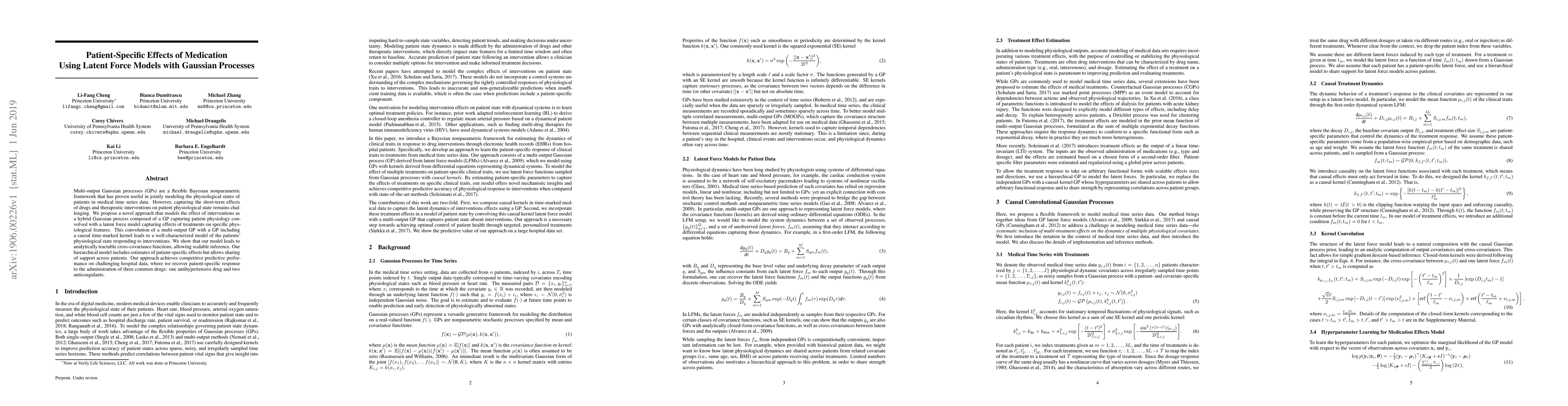 This paper proposes a novel hybrid Gaussian process model that combines multi-output Gaussian processes with latent force models to capture patient-specific effects of medication on physiological states. The approach enables scalable inference and competitive predictive performance in modeling the short-term effects of drugs on patient data.