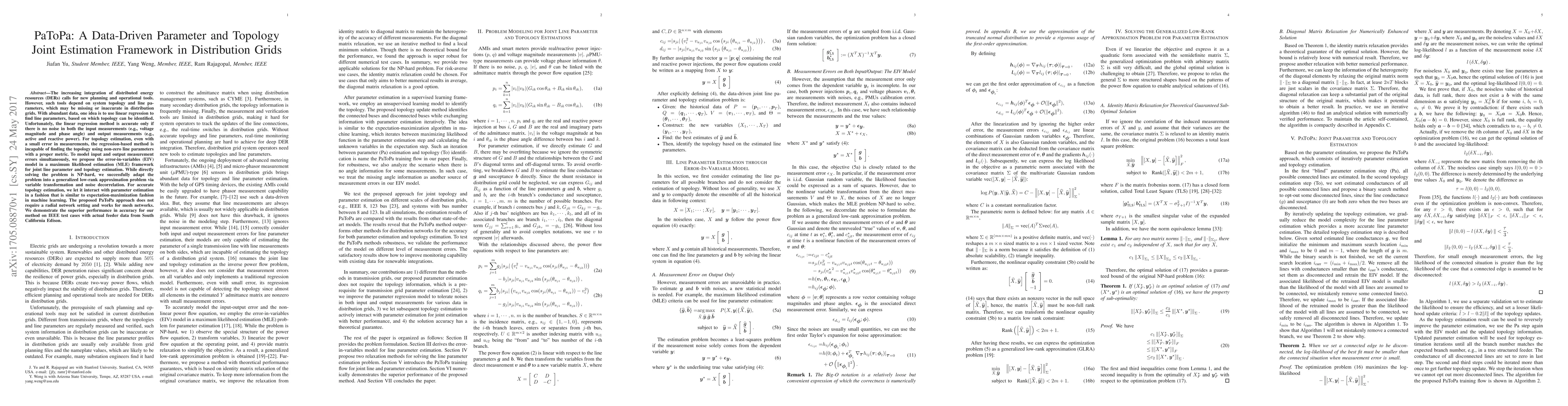 The PaToPa framework proposes a data-driven method for jointly estimating line parameters and topology in distribution grids using an error-in-variables model within a maximum likelihood estimation framework. It adapts the NP-hard problem into a generalized low-rank approximation problem, achieving superior accuracy compared to regression-based methods, as demonstrated on IEEE test cases with real feeder data.