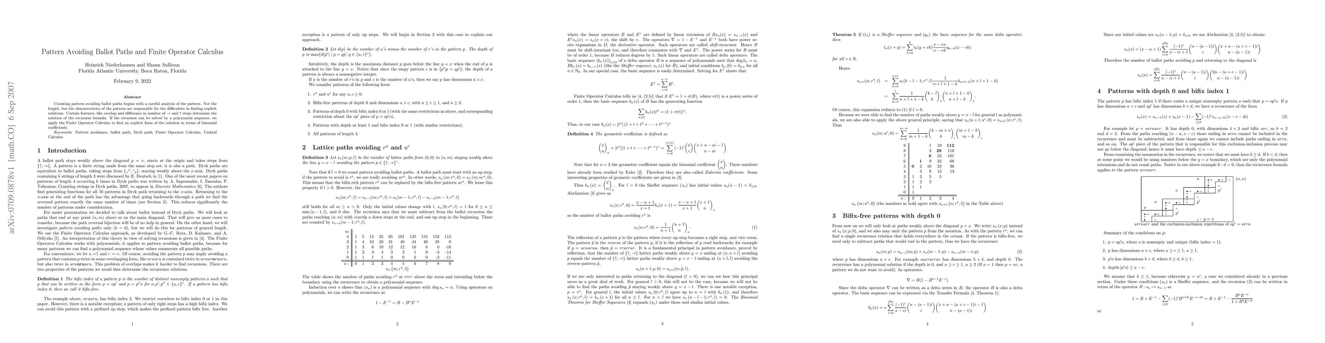 Researchers use Finite Operator Calculus to find explicit solutions for counting pattern-avoiding ballot paths, a problem where certain characteristics of the path determine its solution.