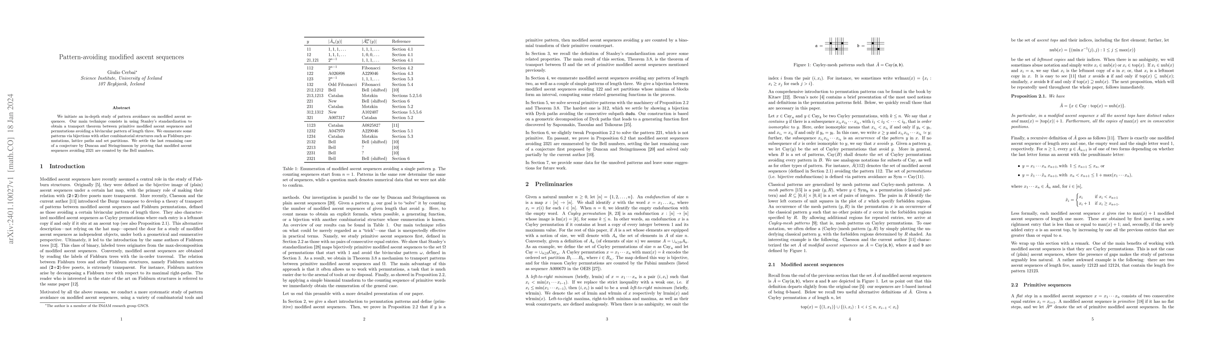This paper studies pattern avoidance in modified ascent sequences, employing Stanley's standardization to link these sequences with permutations avoiding a specific bivincular pattern. The authors enumerate certain patterns using bijections with Fishburn permutations, lattice paths, and set partitions, ultimately proving the conjecture by Duncan and Steingrímsson that 2321-avoiding modified ascent sequences are counted by Bell numbers.