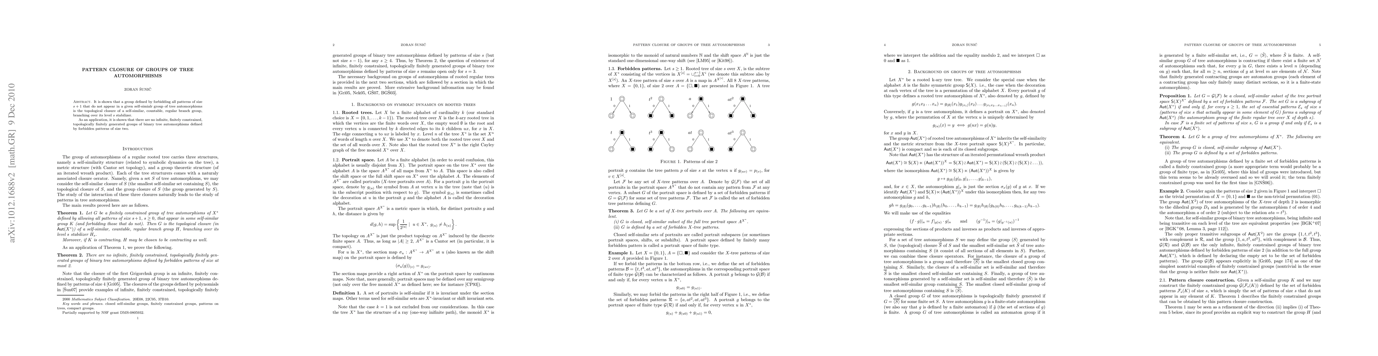 It is shown that a group defined by forbidding all patterns of size s+1 that do not appear in a given self-similar group of tree automorphisms is the topological closure of a self-similar, countable, regular branch group, branching over its level s stabilizer. As an application, it is shown that there are no infinite, finitely constrained, topologically finitely generated groups of binary tree automorphisms defined by forbidden patterns of size two.