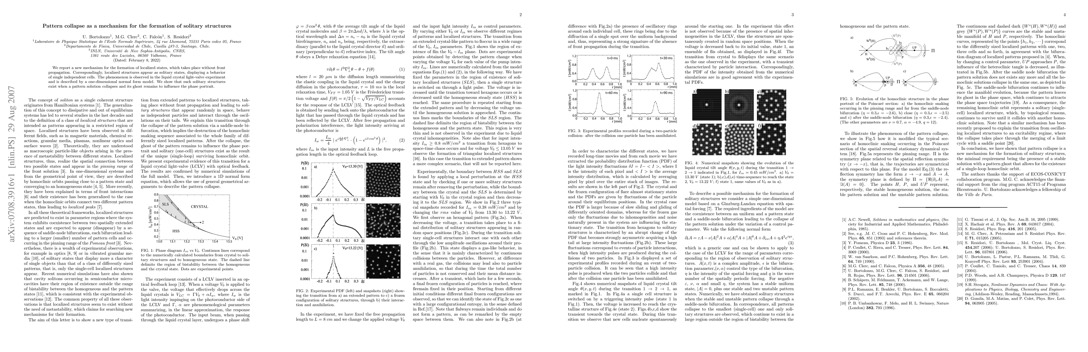 We report a new mechanism for the formation of localized states, which takes place without front propagation. Correspondingly, localized structures appear as solitary states, displaying a behavior of single independent cells. The phenomenon is observed in the liquid crystal light-valve experiment and is described by a one-dimensional normal form model. We show that such solitary structures exist when a pattern solution collapses and its ghost remains to influence the phase portrait.