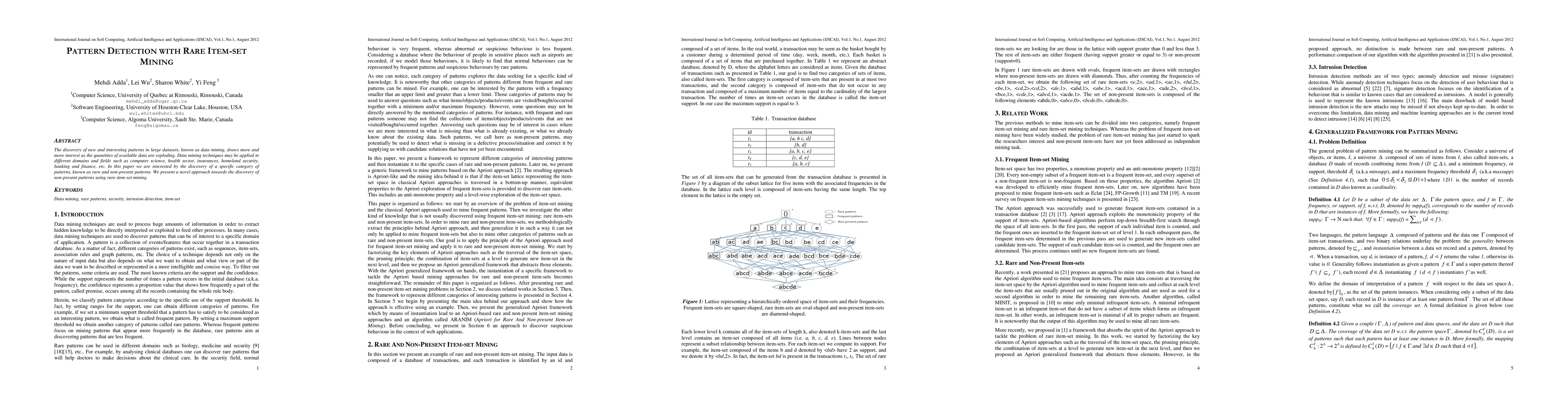 The discovery of new and interesting patterns in large datasets, known as data mining, draws more and more interest as the quantities of available data are exploding. Data mining techniques may be applied to different domains and fields such as computer science, health sector, insurances, homeland security, banking and finance, etc. In this paper we are interested by the discovery of a specific category of patterns, known as rare and non-present patterns. We present a novel approach towards the discovery of non-present patterns using rare item-set mining.