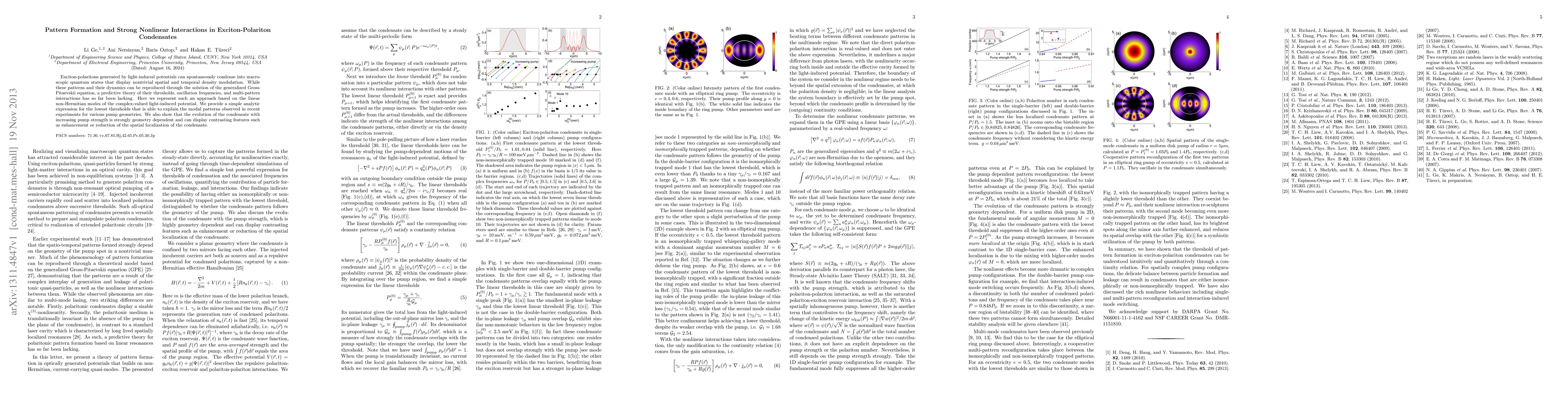 Exciton-polaritons generated by light-induced potentials can spontaneously condense into macroscopic quantum states that display nontrivial spatial and temporal density modulation. While these patterns and their dynamics can be reproduced through the solution of the generalized Gross-Pitaevskii equation, a predictive theory of their thresholds, oscillation frequencies, and multi-pattern interactions has so far been lacking. Here we represent such an approach based on the linear non-Hermitian modes of the complex-valued light-induced potential. We provide a simple analytic expression for the lowest thresholds that is able to explain the modal patterns observed in recent experiments for various pump geometries. We also show that the evolution of the condensate with increasing pump strength is strongly geometry dependent and can display contrasting features such as enhancement or reduction of the spatial localization of the condensate.