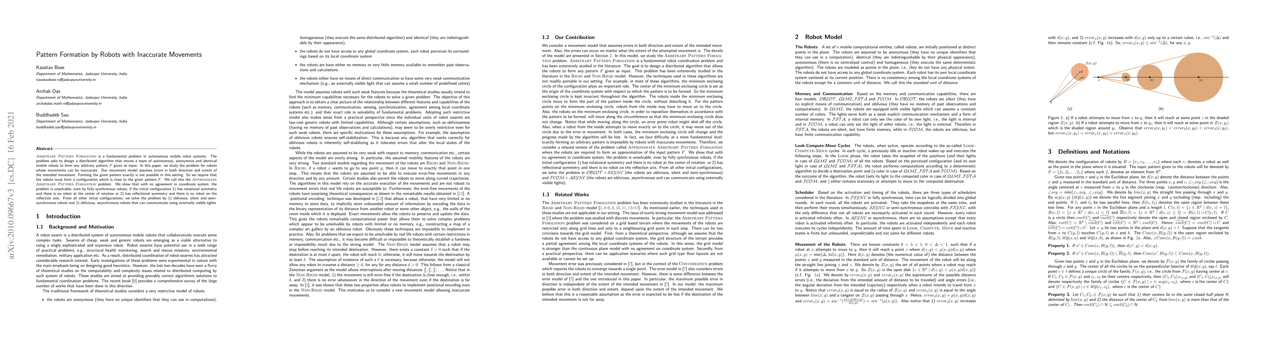 This paper explores the \textsc{Approximate Arbitrary Pattern Formation} problem for autonomous robots with inaccurate movements, showing that exact pattern formation is impossible due to errors. It concludes that the problem is unsolvable under certain symmetrical initial configurations, but solvable for others using distributed algorithms.