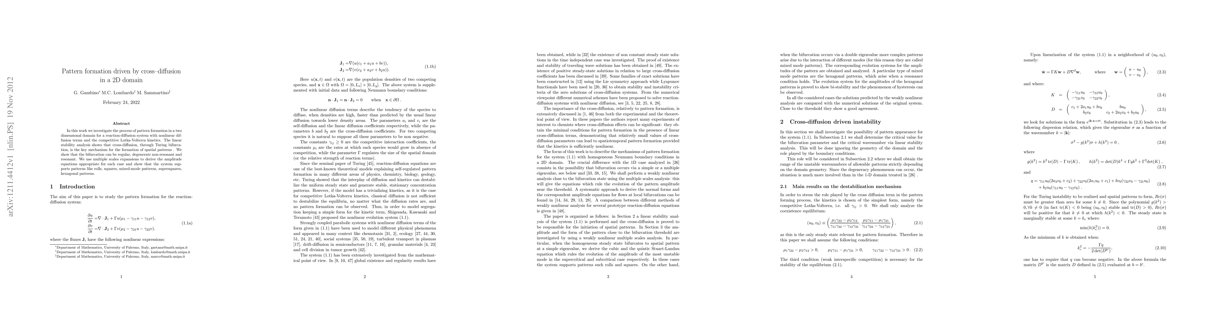 Researchers study how patterns form in a 2D system with nonlinear diffusion and competitive kinetics, finding that cross-diffusion drives pattern formation through Turing bifurcation and supports various spatial patterns.