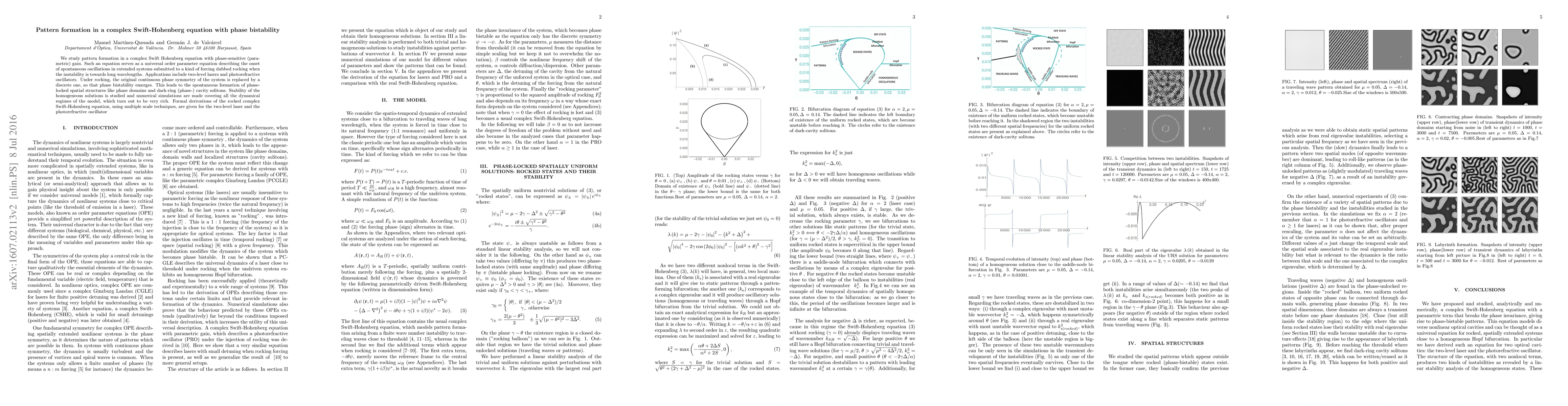 Researchers studied pattern formation in a complex equation used to model certain types of lasers and optical oscillators, finding rich dynamical regimes that lead to the emergence of phase-locked spatial structures.