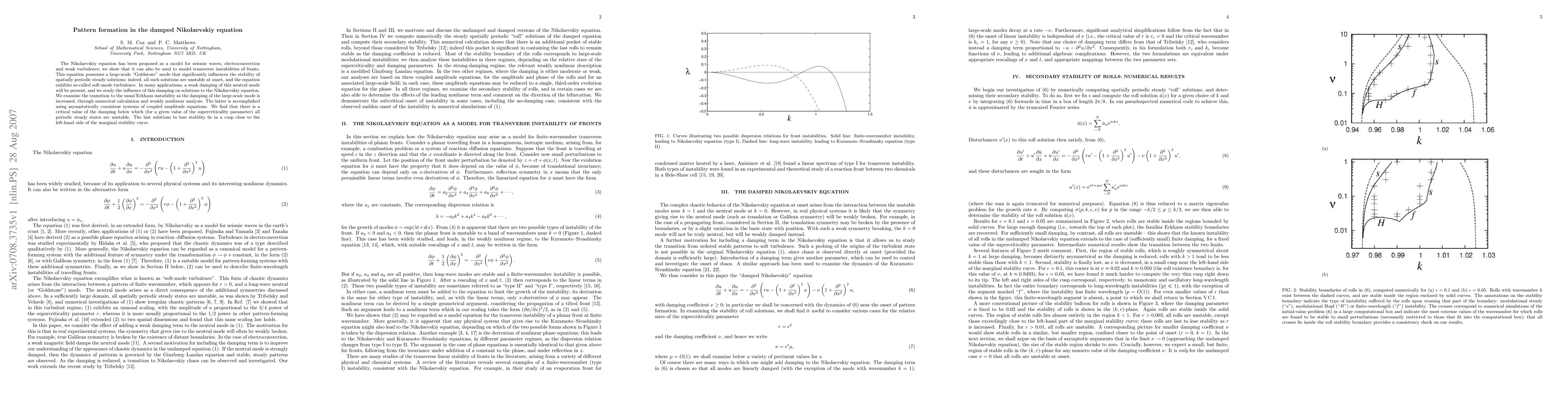 The Nikolaevskiy equation has been proposed as a model for seismic waves, electroconvection and weak turbulence; we show that it can also be used to model transverse instabilities of fronts. This equation possesses a large-scale "Goldstone" mode that significantly influences the stability of spatially periodic steady solutions; indeed, all such solutions are unstable at onset, and the equation exhibits so-called soft-mode turbulence. In many applications, a weak damping of this neutral mode will be present, and we study the influence of this damping on solutions to the Nikolaevskiy equation. We examine the transition to the usual Eckhaus instability as the damping of the large-scale mode is increased, through numerical calculation and weakly nonlinear analysis. The latter is accomplished using asymptotically consistent systems of coupled amplitude equations. We find that there is a critical value of the damping below which (for a given value of the supercriticality parameter) all periodic steady states are unstable. The last solutions to lose stability lie in a cusp close to the left-hand side of the marginal stability curve.