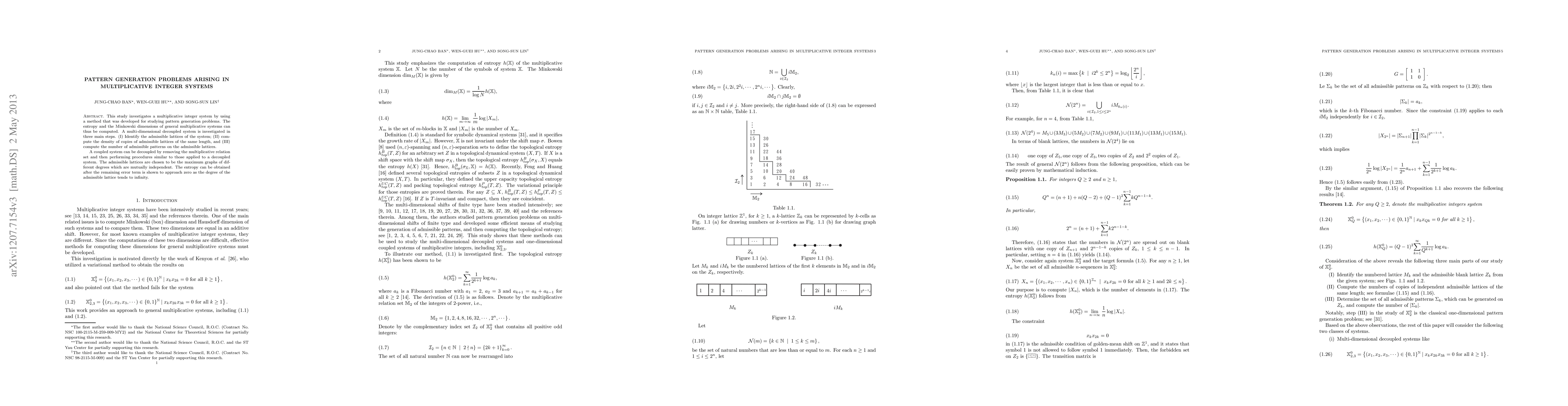 This paper explores pattern generation in multiplicative integer systems, employing a novel method to compute entropy and Minkowski dimensions. It decouples coupled systems by removing multiplicative relations and identifies maximum independent graphs as admissible lattices, ultimately determining entropy as the error term approaches zero.
