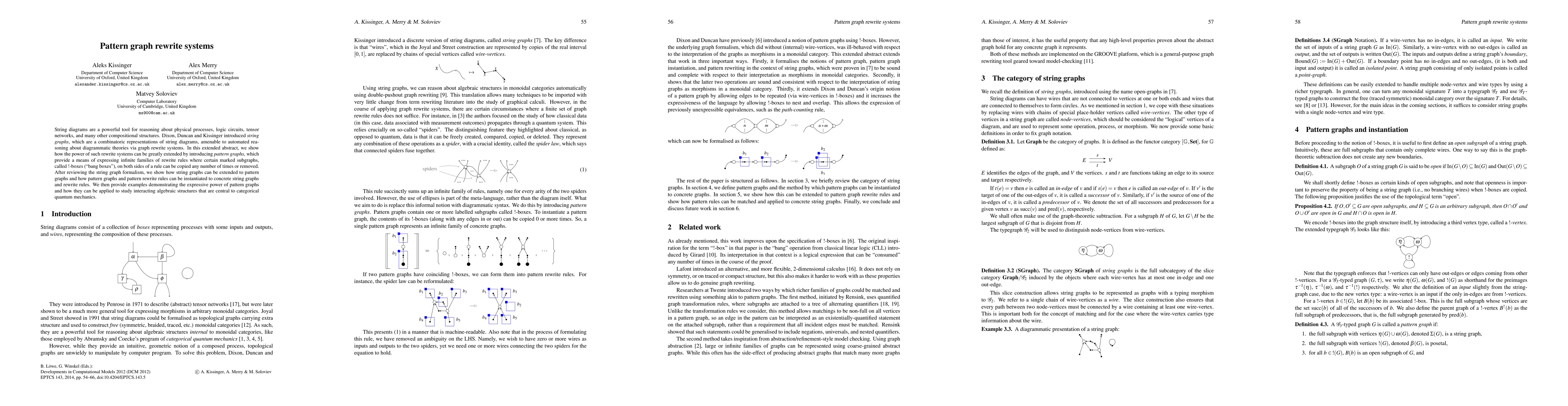This paper introduces pattern graphs, an extension of string graphs, to express infinite families of rewrite rules using !-boxes. It demonstrates how these pattern graphs can be instantiated to concrete string graphs and rewrite rules, showcasing their application in studying interacting algebraic structures relevant to categorical quantum mechanics.
