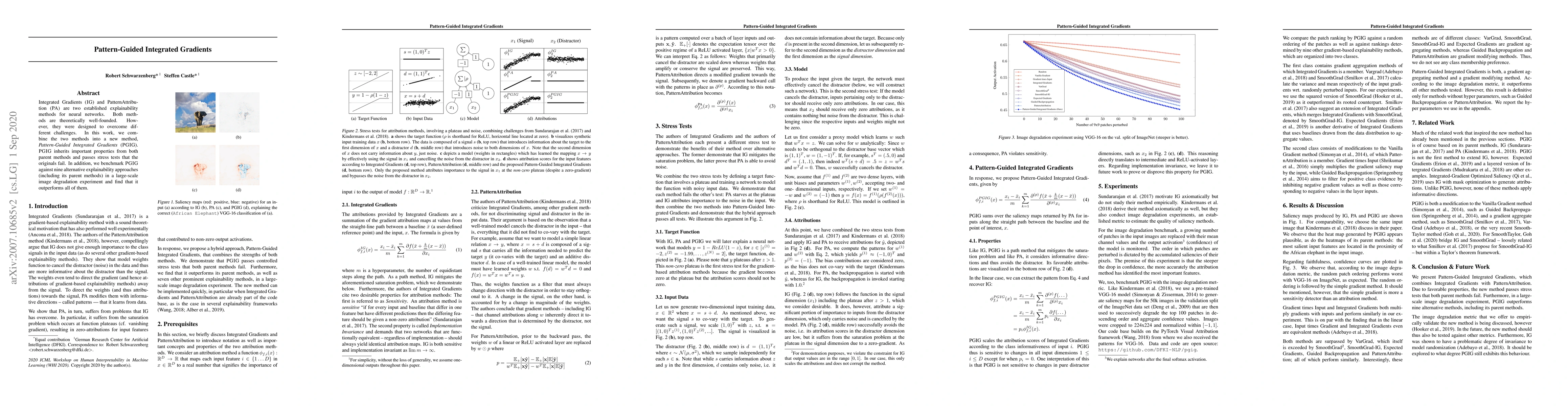This paper introduces Pattern-Guided Integrated Gradients (PGIG), a novel method combining Integrated Gradients and PatternAttribution for neural network explainability. PGIG outperforms nine alternative methods in a large-scale image degradation experiment, demonstrating its superior effectiveness.
