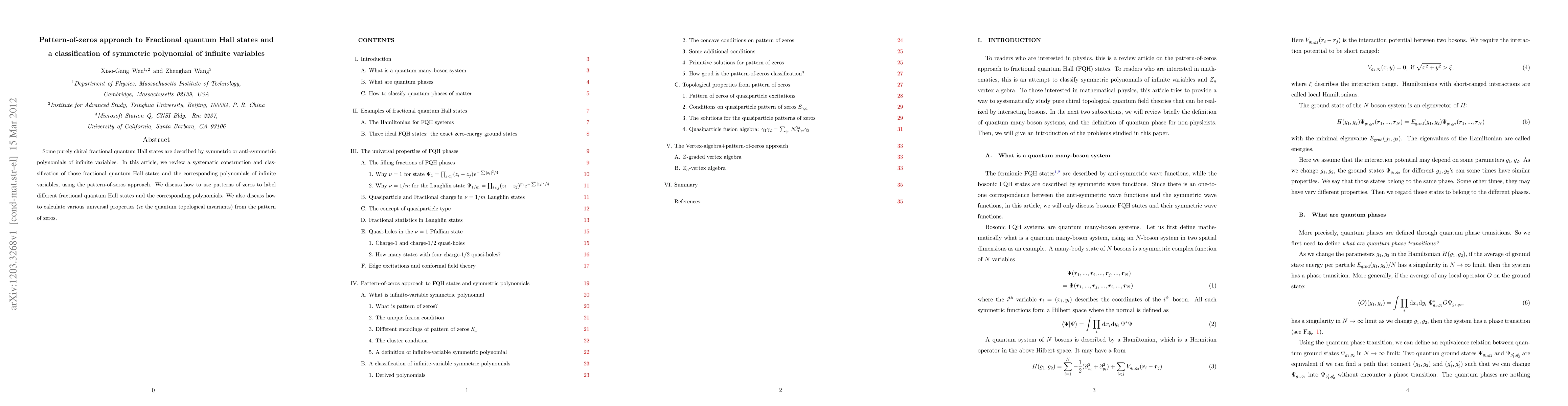This paper reviews the systematic construction and classification of chiral fractional quantum Hall states using the pattern-of-zeros approach. It explores how zero patterns label these states and their corresponding symmetric polynomials of infinite variables, and calculates quantum topological invariants from these patterns.