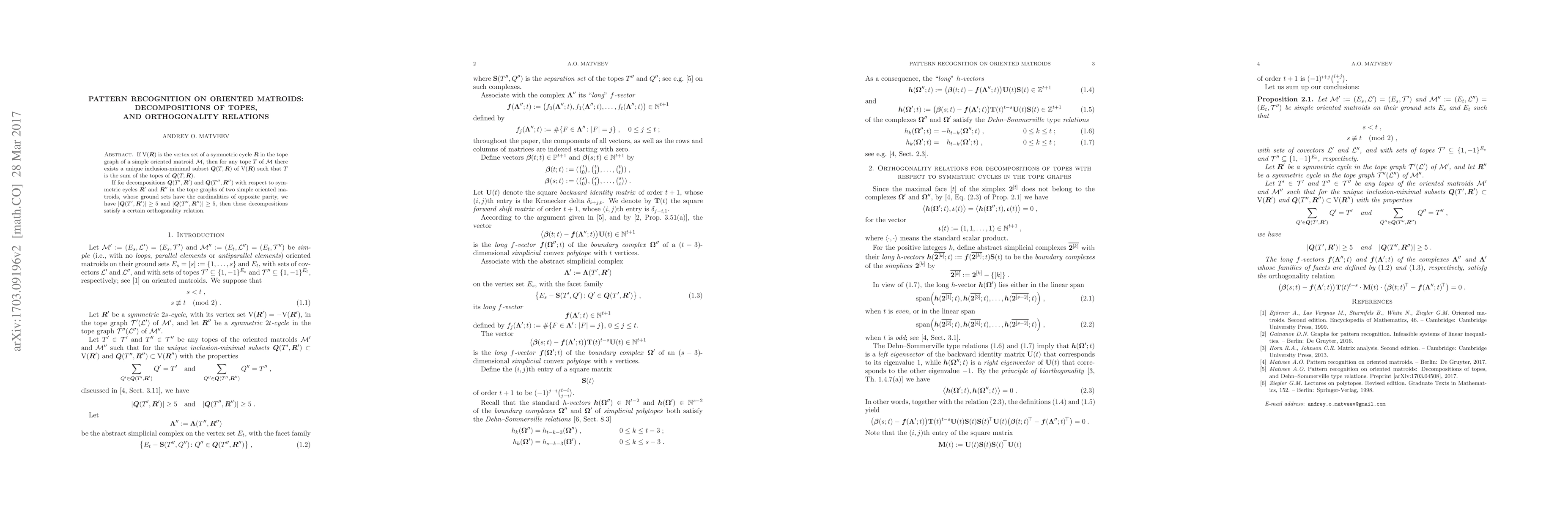 If V(R) is the vertex set of a symmetric cycle R in the tope graph of a simple oriented matroid M, then for any tope T of M there exists a unique inclusion-minimal subset Q(T,R) of V(R) such that T is the sum of the topes of Q(T,R). If for decompositions Q(T',R') and Q(T",R") with respect to symmetric cycles R' and R" in the tope graphs of two simple oriented matroids, whose ground sets have the cardinalities of opposite parity, we have |Q(T',R')|>3 and |Q(T",R")|>3, then these decompositions satisfy a certain orthogonality relation.
