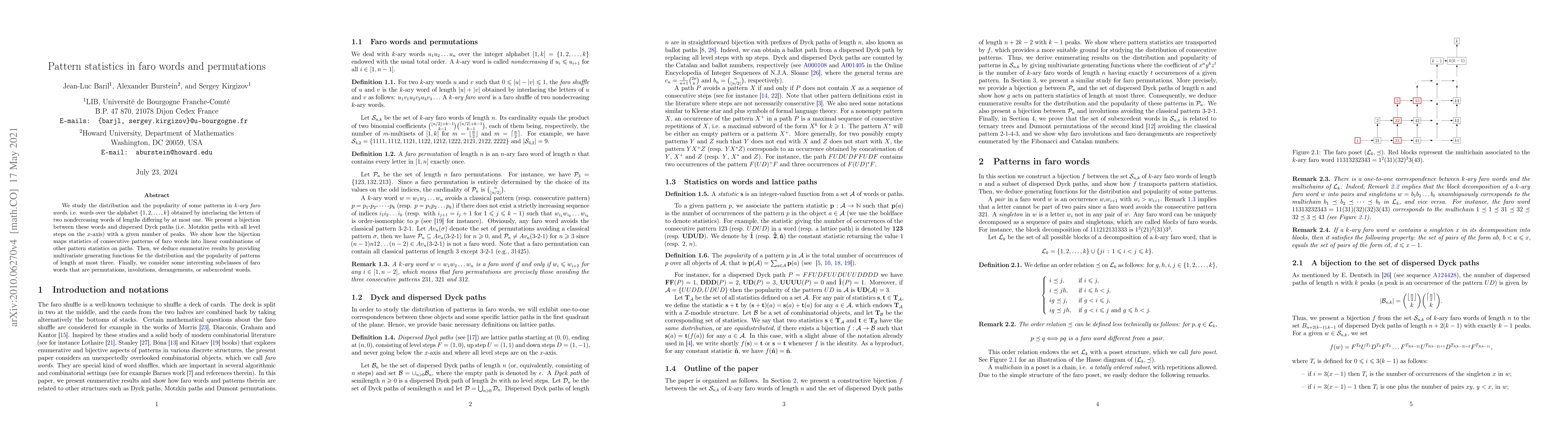 This paper explores the distribution and popularity of patterns in $k$-ary faro words, establishing a bijection with dispersed Dyck paths and deriving multivariate generating functions for patterns up to length three. It also investigates specific subclasses of faro words, such as permutations, involutions, derangements, and subexcedent words.
